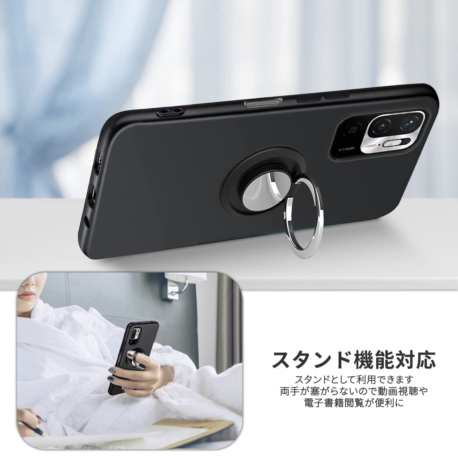 Xiaomi Redmi Note 10 JE ケース Redmi Note 10T ケース リング付き シリコン 耐衝撃 Redmi Note10 JE XIG02 カバー 専用 指紋防止 黄変防止 TPU 薄型 ケース 車載ホルダー対応 ストラップホール付き 滑り止め 落下防止 ブラック