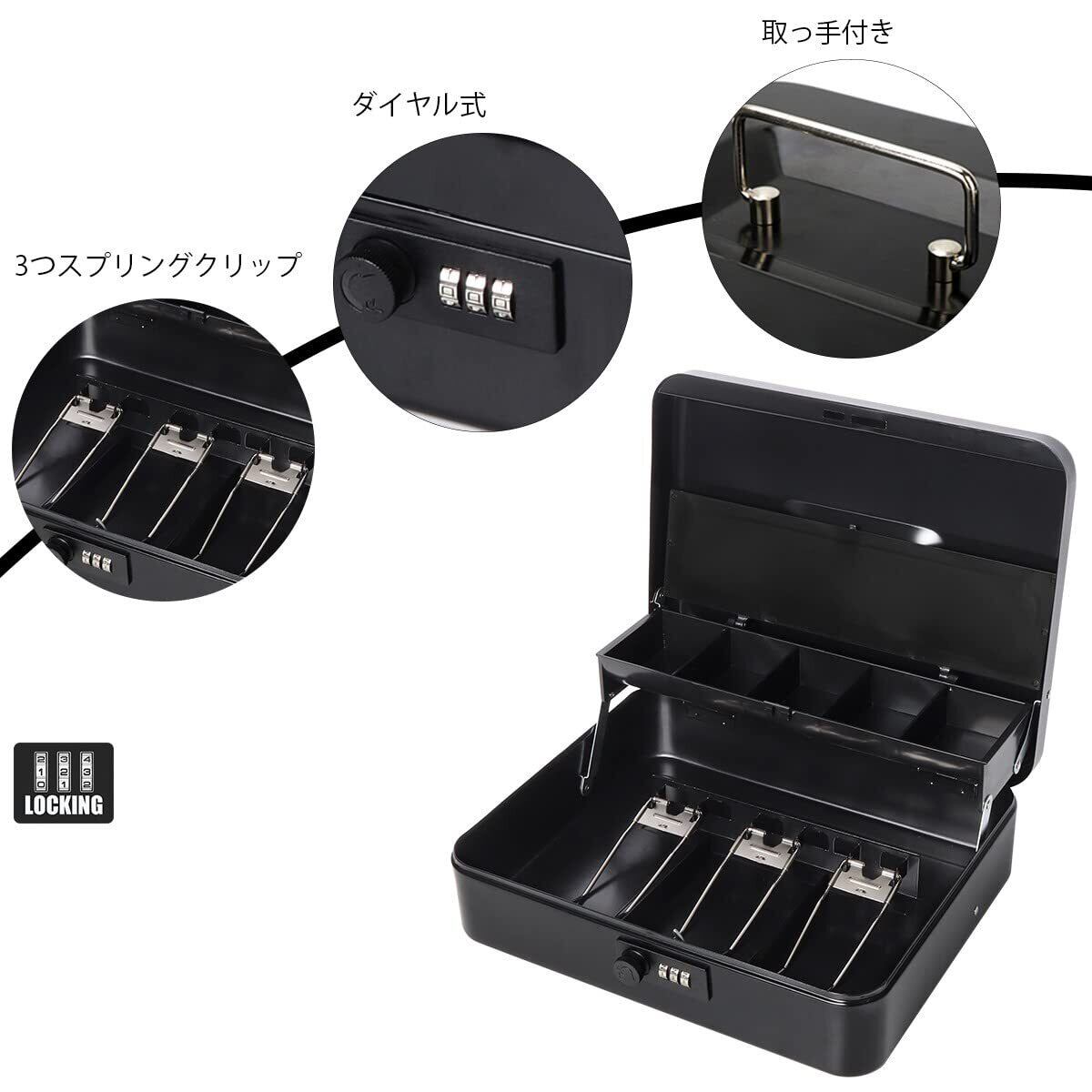 (トモリ)Tomori 手提げ金庫 コインケース 3つスプリングクリップ ダイヤル式 貯金箱 紙幣整理 金属製 (ブラック, L)