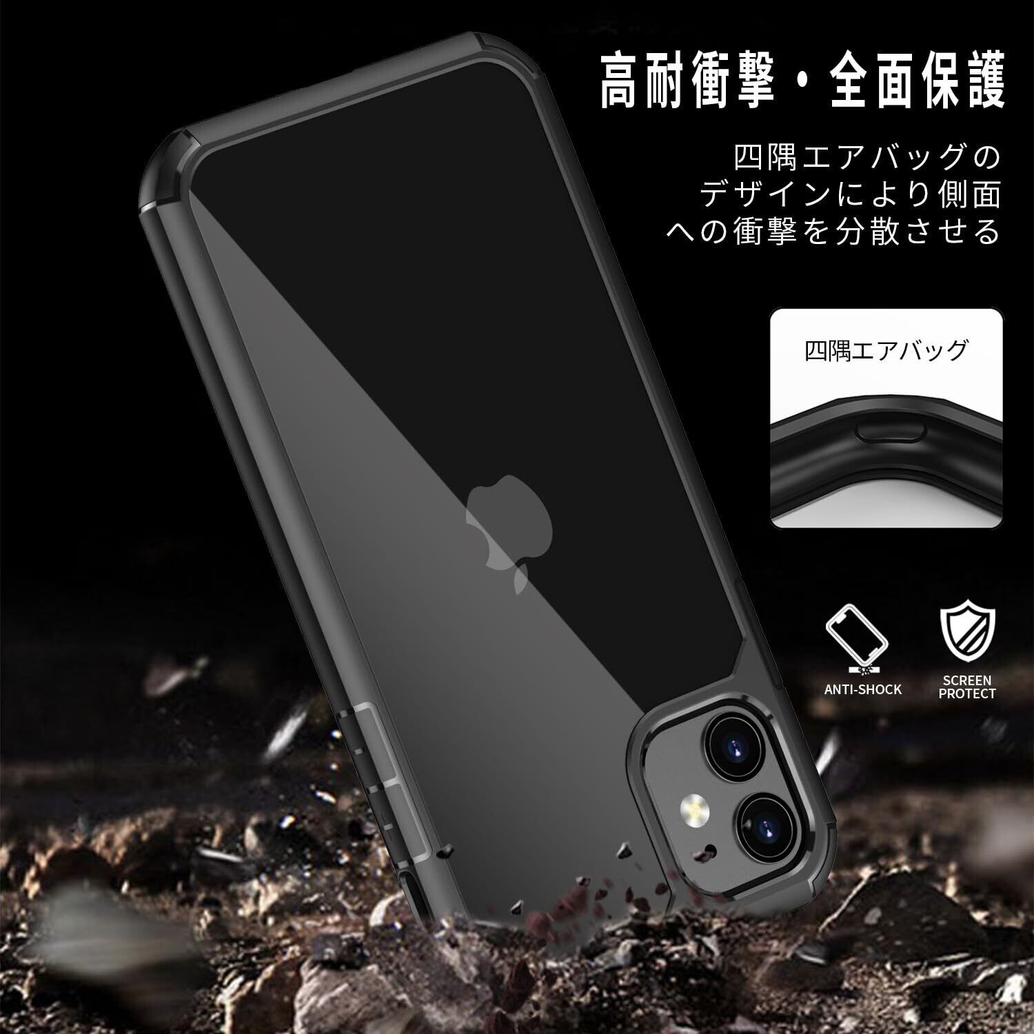 Eazaki iPhone 11 用 ケース 透明 バンパーの全面保護 耐衝撃 黄変防止 指紋防止 滑り止め スレ傷防止 耐久性 カバー ストラップホール付き アイフォン11 スマホケース 6.1インチ用 携帯ケース(クリア・ブラック)