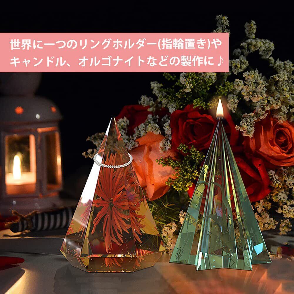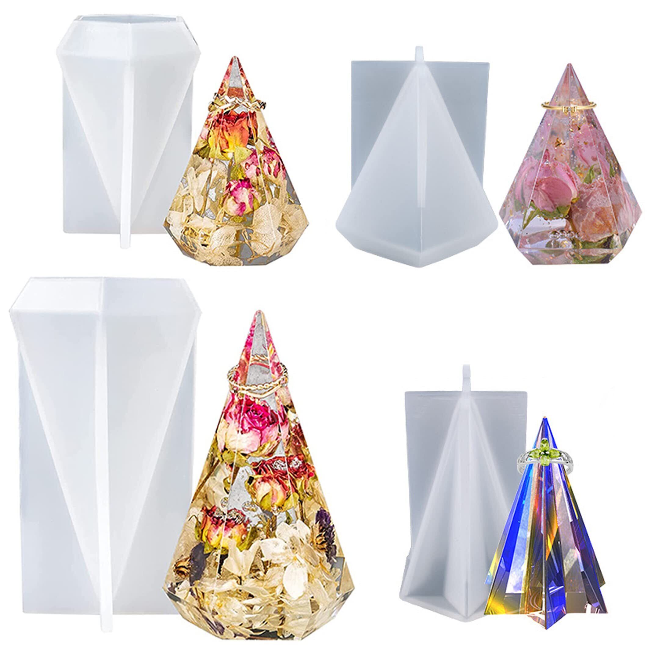 ?【商品について】 六角錐2種類、五角錐、六芒星型の4個セットです。キャンドル作りや、オルゴナイト、リングホルダーなどの制作に最適です。高品質な半透明のシリコンを使用しております。鏡面仕上げで表面がツルツルに綺麗の仕上がります。 UVレジン、エポキシ樹脂、樹脂粘土などにご利用いただけます。