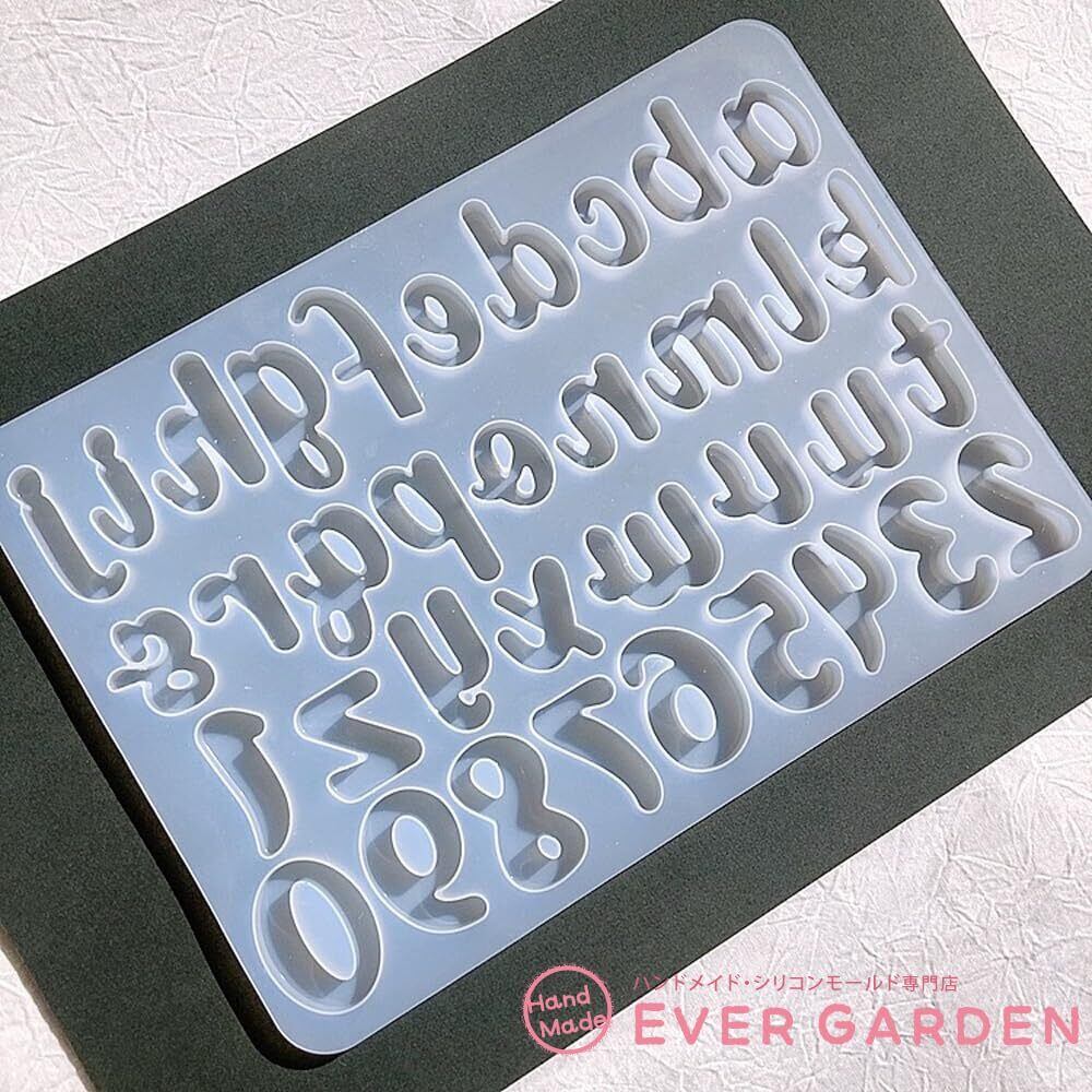 【特価セール】Evergarden アルファベット小文字 数字 筆記体 シリコンモールド レジン アルファベット 小文字 アクセサリー パーツ イヤリング ピアス キーホルダー シャカシャカ シリコン モールド キャンドル アロマストーン 石膏 手作り 樹脂 粘土 シリコン型 型 キット ハンドメイド 鏡面 仕上げ