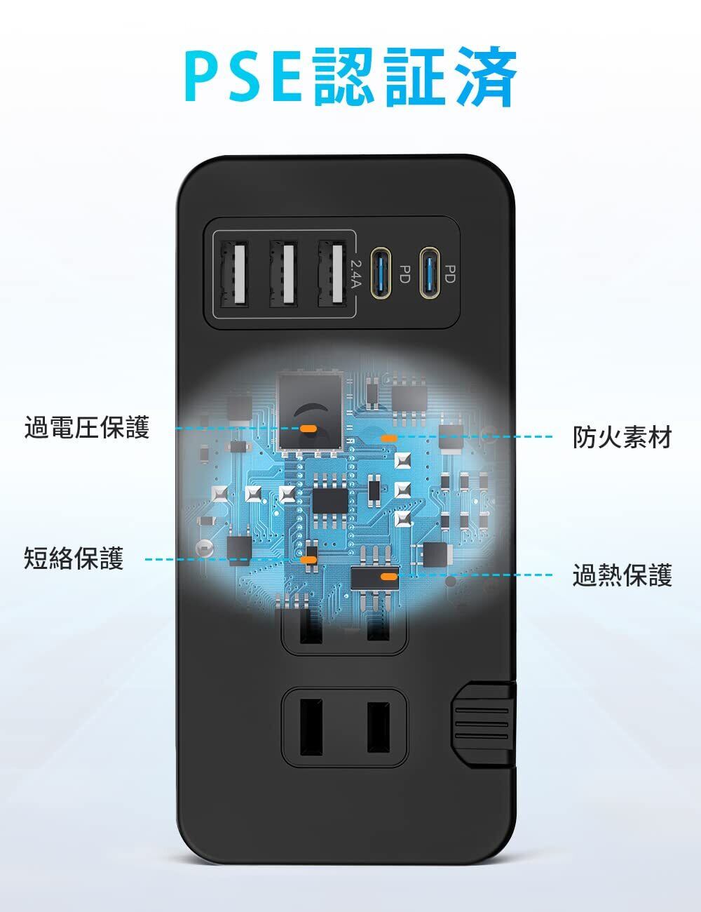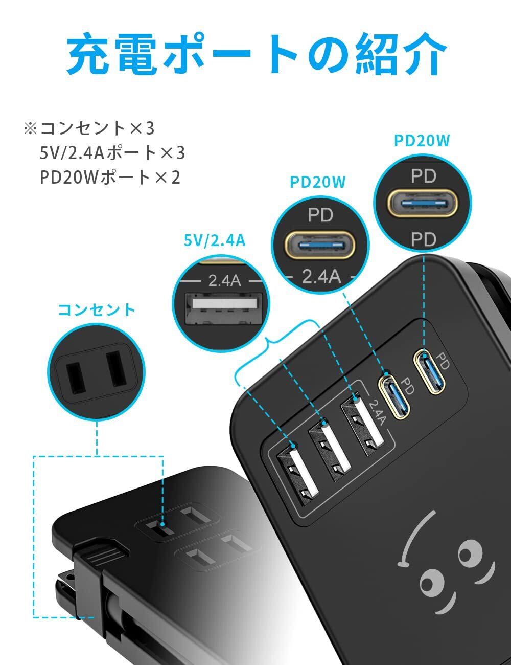 【PD・QC3.0 急速充電対応・最新iphone13に急速充電可能】このコンセントはPDポート+QC3.0ポート+3つ5V/2.4AUSBポートを付きので、急速充電を実現します。USB-Cポートは最大20Wの急速充電を対応して、5V/1Aのポートより充電速度が10倍速いです。USBポート合計最大7.2A出力(※急速充電を実現するために、別売のUSB-C充電ケーブルが必要です。AndroidはType-C to Type-Cケーブルを利用し、IOSはType-C to lightningケーブルを利用が必要です)。
