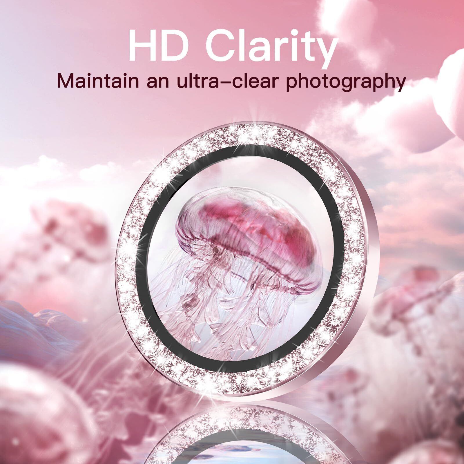 JETech iPhone 15 6.1 インチ/iPhone 15 Plus 6.7 インチ用 カメラレンズフィルム キラキラ ピカピカ 個別の9H強化ガラス金属リングカバー HDクリア 1セット (ピンク)