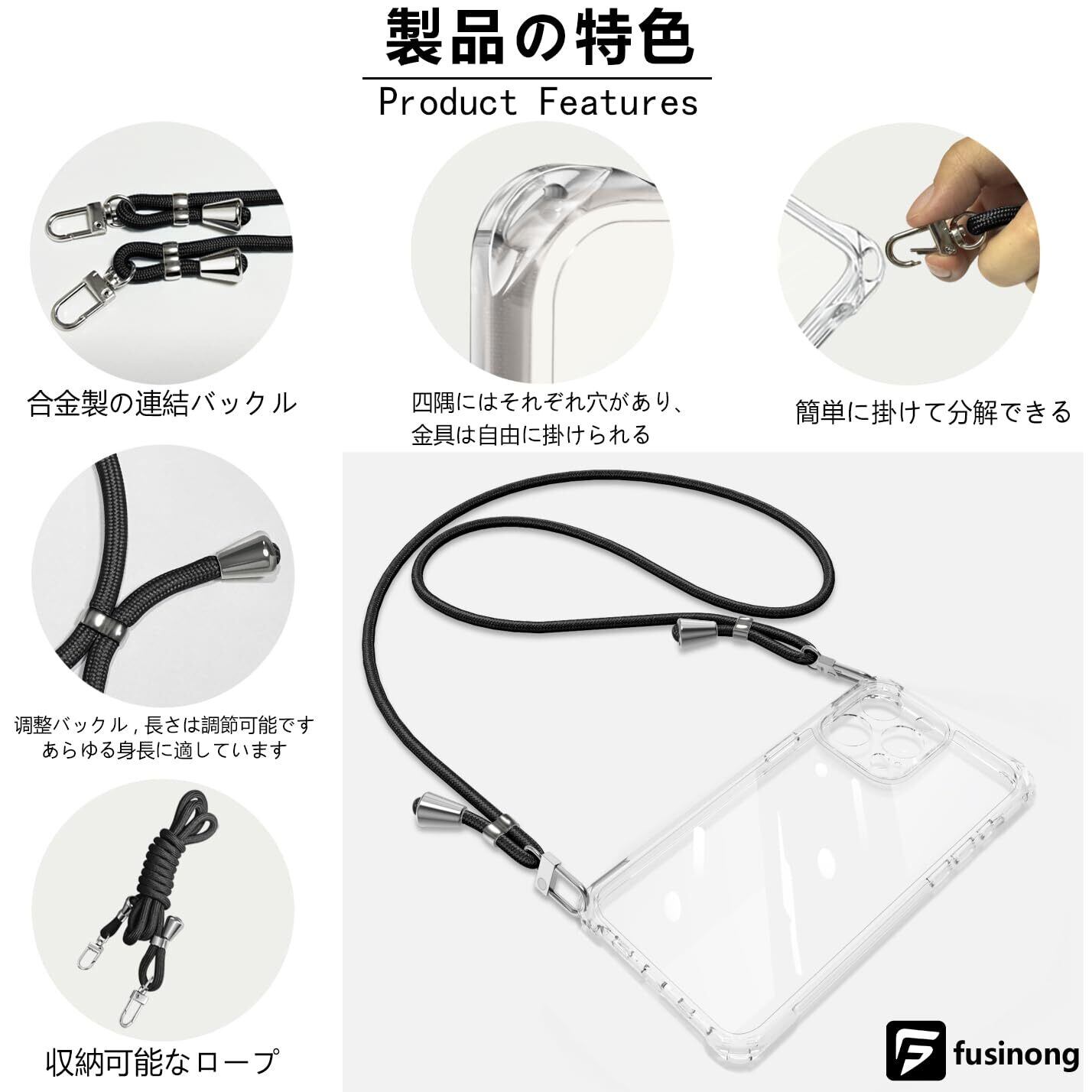 【ショルダーストラップ 付き】電話ケースの特別な四隅のデザインにより、ストラップを垂直または水平にリンクできます。柔らかいナイロンストラップで首を快適に保ち、ストレッチの長さを調整でき、ストラップを取り外して、スマホケースを単独で使用できます。