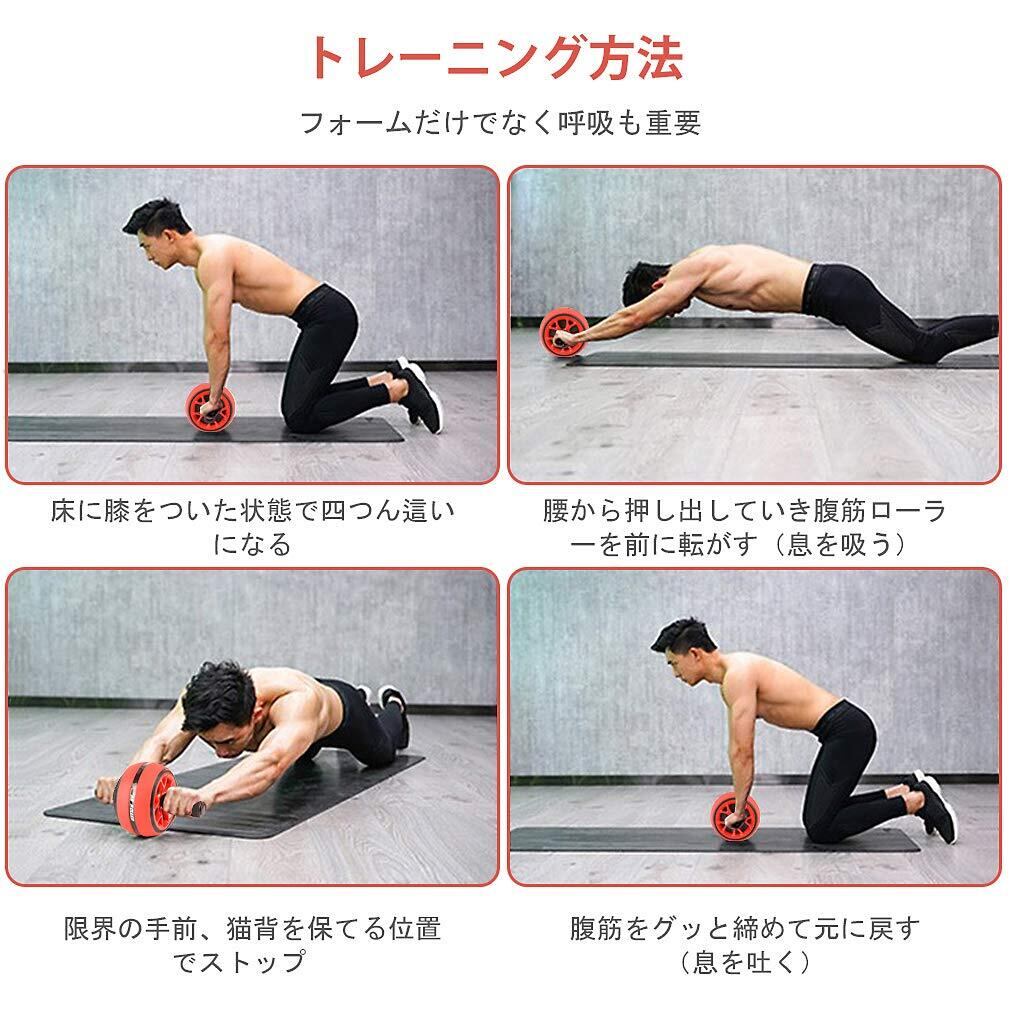 AUOPLUS 腹筋ローラー 膝マット付き アブホイール 腹筋 トレーニング器具 筋トレグッズ エクササイズローラー 体幹 ストレッチ ダイエット器具 アブローラー