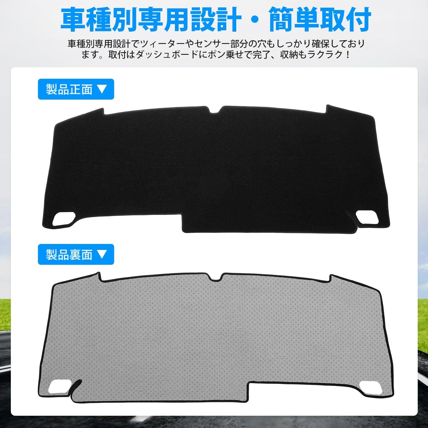 3.【こだわり設計】縁取り加工で高級感アップ!また、裏面には滑り止め加工され、ズレ防止もバッチリです。丁寧に寸法を取って完全な専用設計なので、ツィーターやセンサーの穴も確保しております。さらに、マジックテープが10枚付属され、ダッシュボードにしっかりと密着し、運転中のズレを防ぎます。