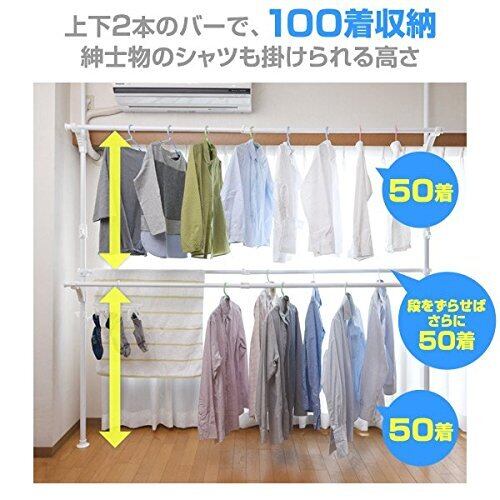 ●上下2段、合わせて約100着収納(3本掛けで最大150着)※紳士物シャツでの目安