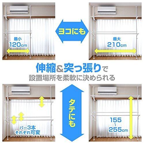 山善(YAMAZEN) 突っ張りハンガーラック 衣類収納 幅120-210cm 耐荷重 45kg ダブル 布団も干せる 縦横伸縮 引っ掛け棒付属 組立かんたん ホワイト WJM-3(WH)