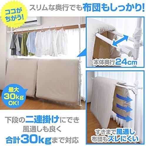 ●下段の二連掛けは風通しも確保できるので布団干しとしても活躍。合計30kgまで対応