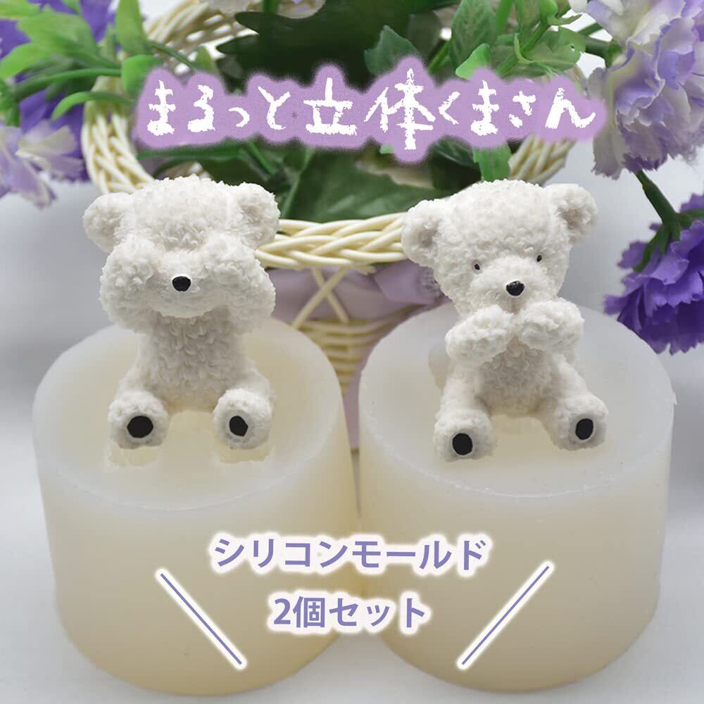 ?【商品について】背中もまるっと全て立体のかわいいクマさんが作れます。 やわらかく高品質なモールドです。目隠しバージョンと口隠しバージョンの2個セットです。ハンドメイド作品として粘土用としてお使いいただけます。石膏を使ったアロマハイストーンの制作にも最適です。