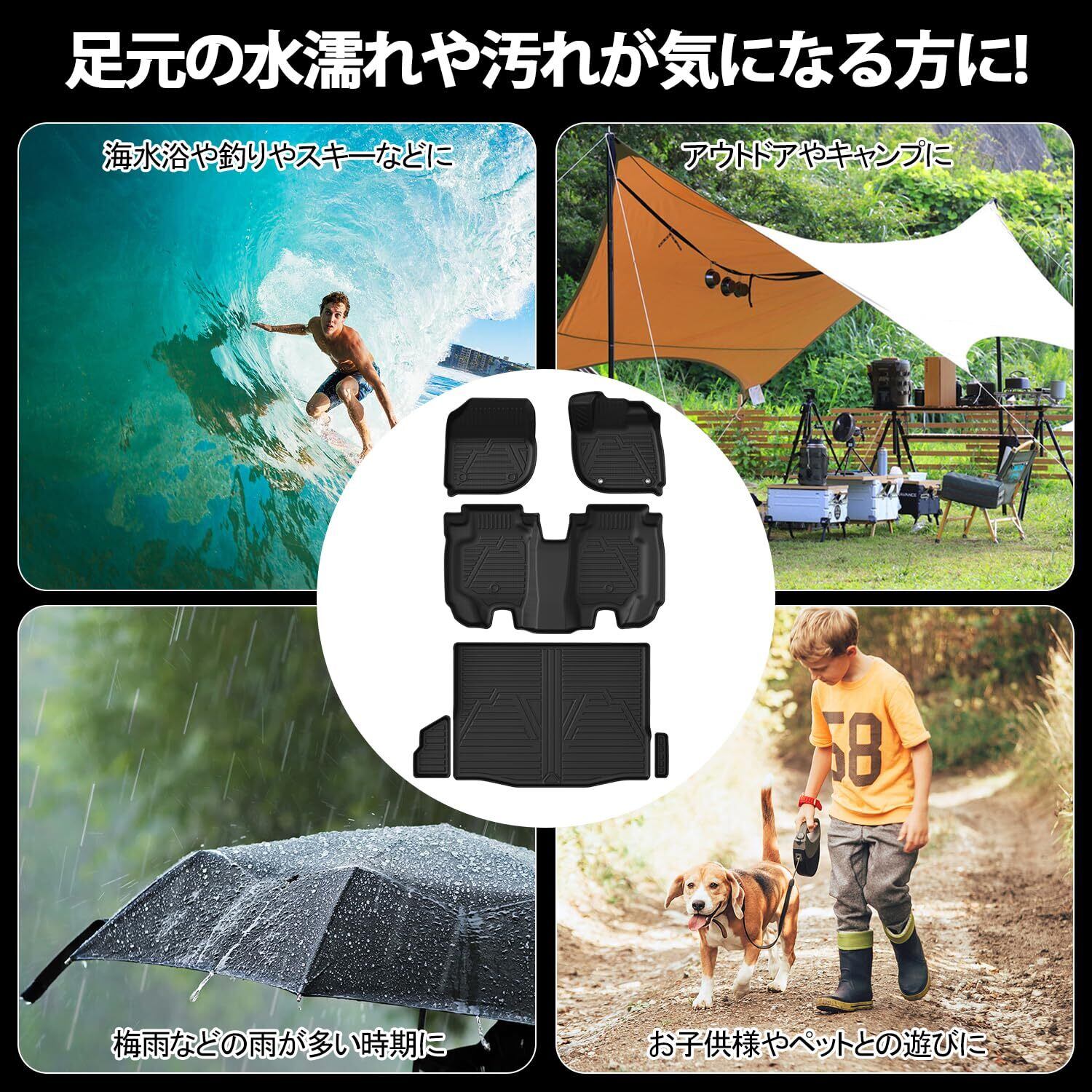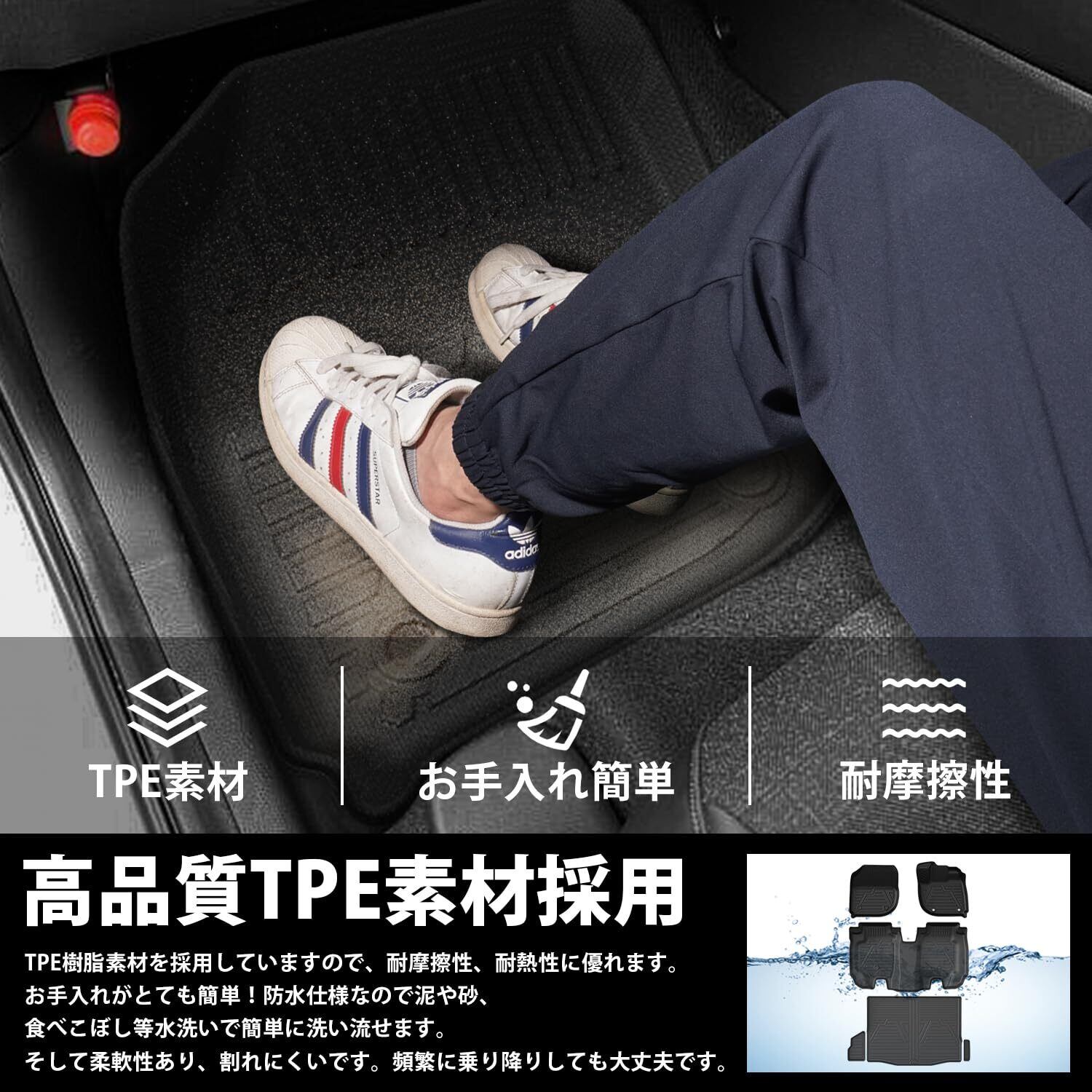 【高品質TPE素材採用】VEZELラゲッジマットはTPE樹脂素材を採用していますので、耐摩擦性、耐熱性に優れます。お手入れがとても簡単!防水仕様なので泥や砂、食べこぼし等水洗いで簡単に洗い流せます。そして柔軟性あり、割れにくいです。頻繁に乗り降りしても大丈夫です。長年使用しても割れ、変形、変色を起こさないカーマットに最適な素材です。
