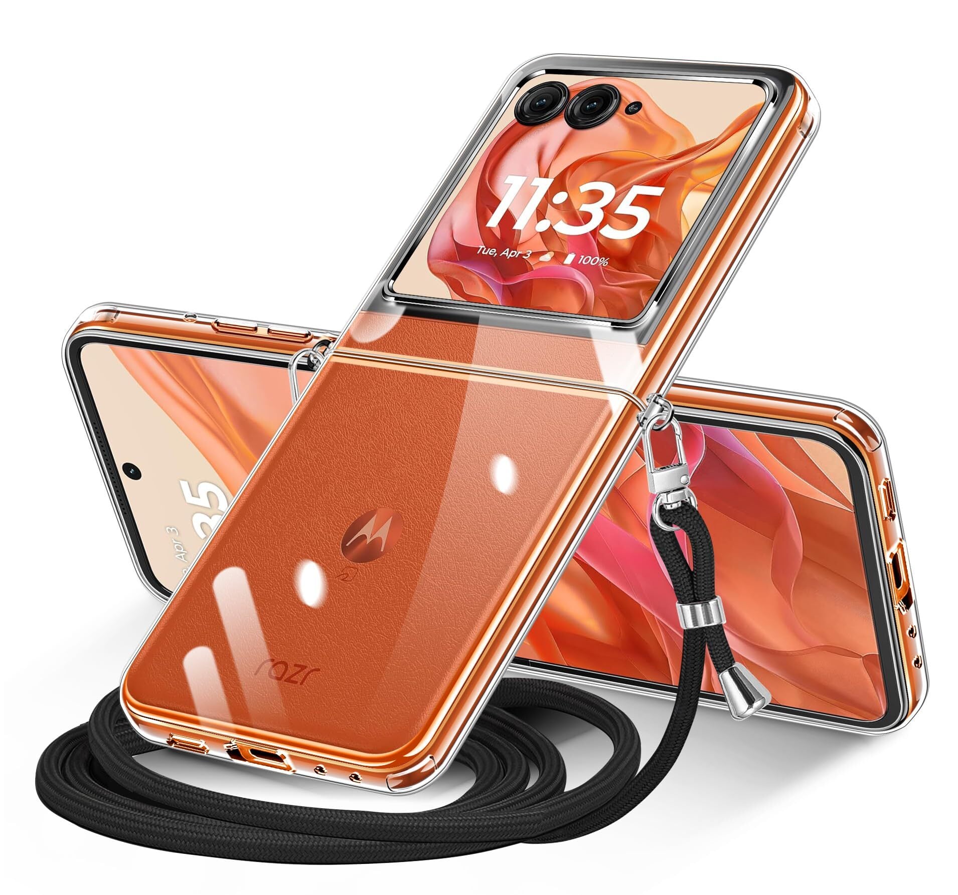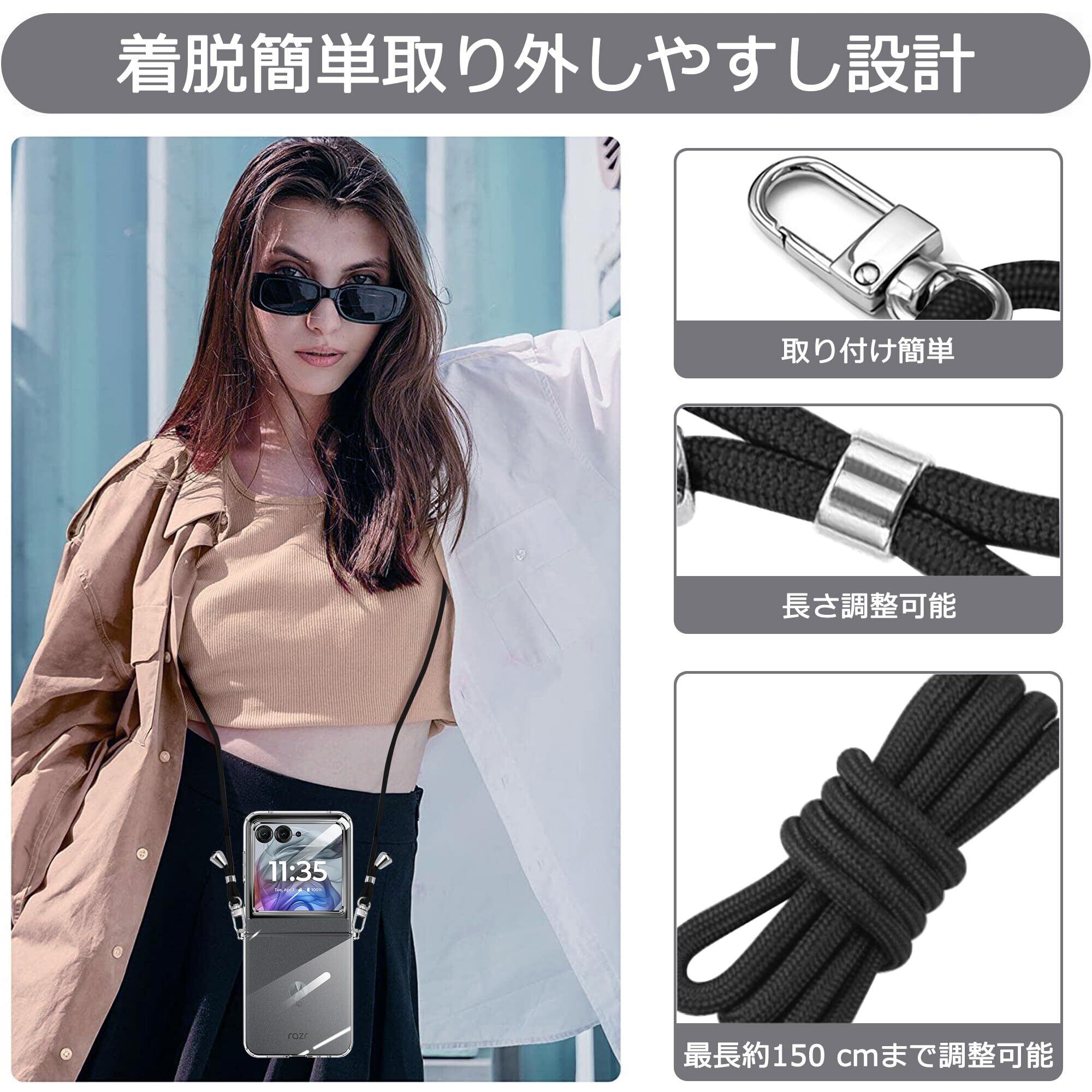 Moto Razr 50 / Razr 50S / Razr 60 ケース クリア ショルダー Motorola Razr 50d M-51E スマホケース モトローラ Razr50 カバー 肩掛け 斜めかけ 縄掛けケース 透明 TPU 耐衝撃 薄型 軽量 紐付き 斜めがけ 織りストラップ付き ネックストラップ ショルダー ケース 長さ調整可能 取り外し可能 落下防止 紛失防止 (クリア)