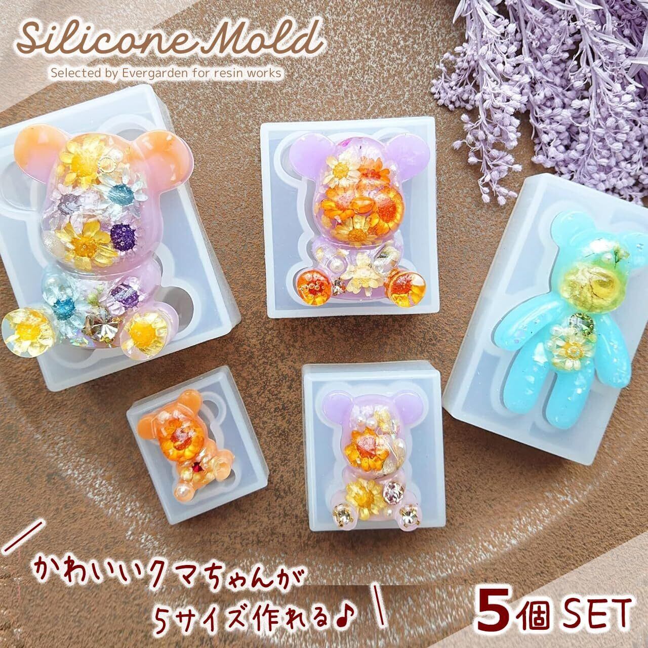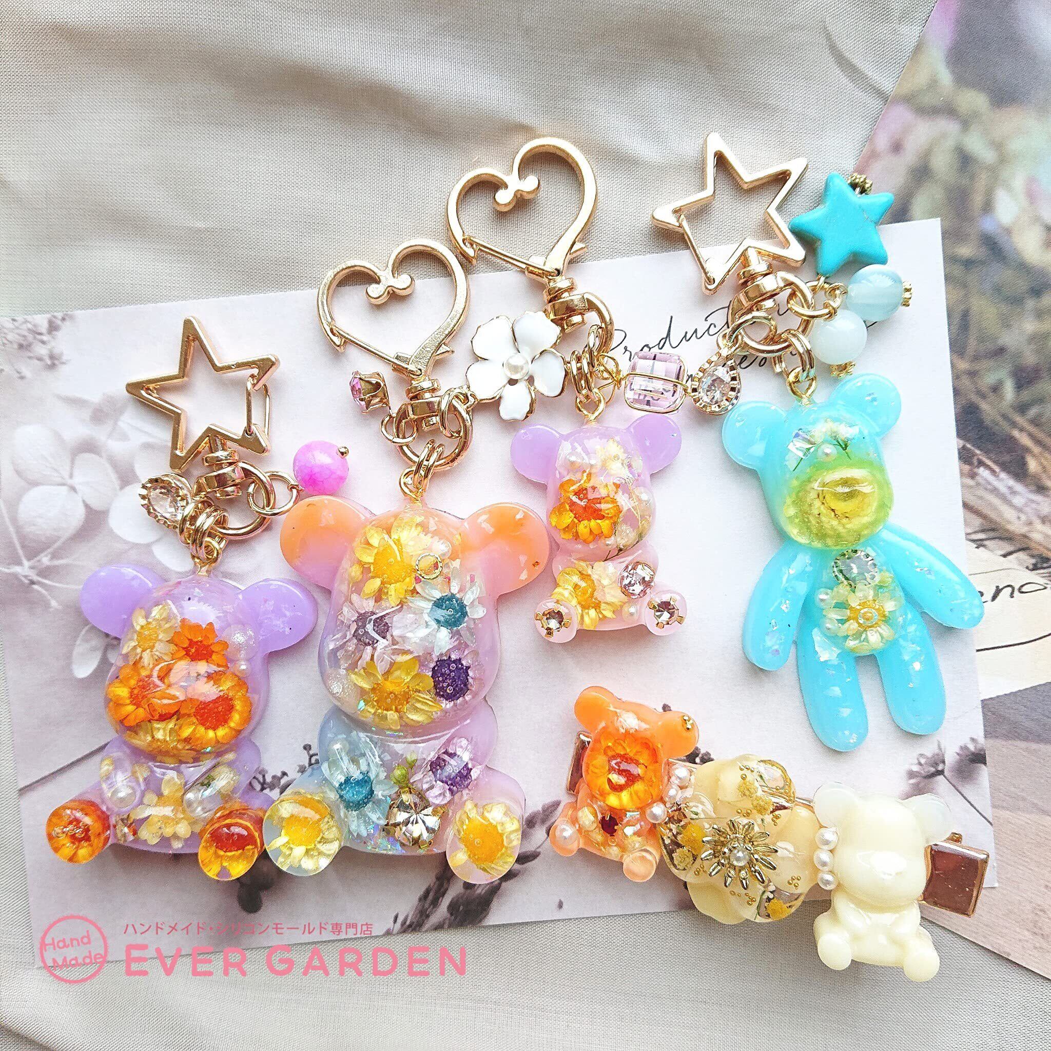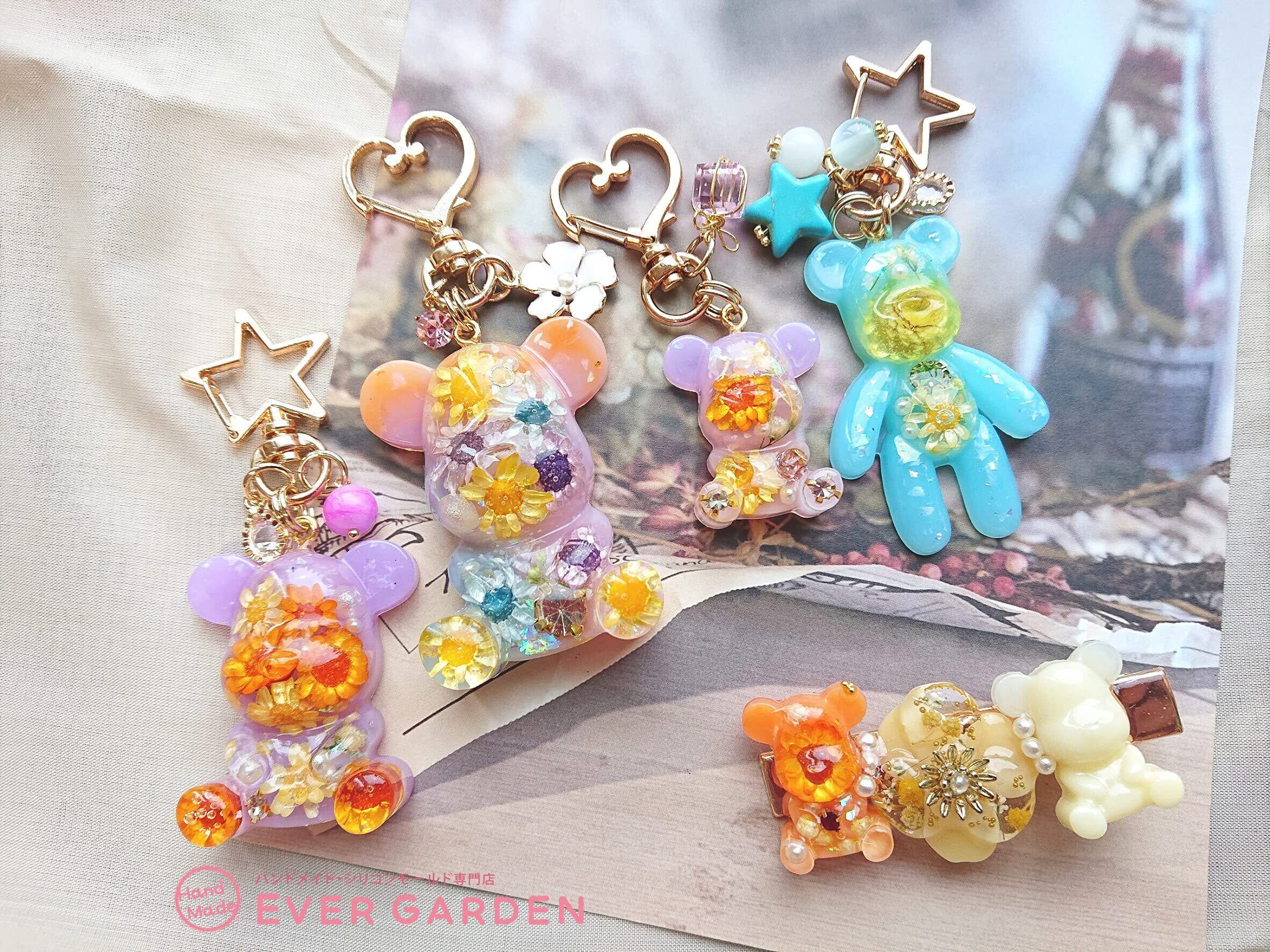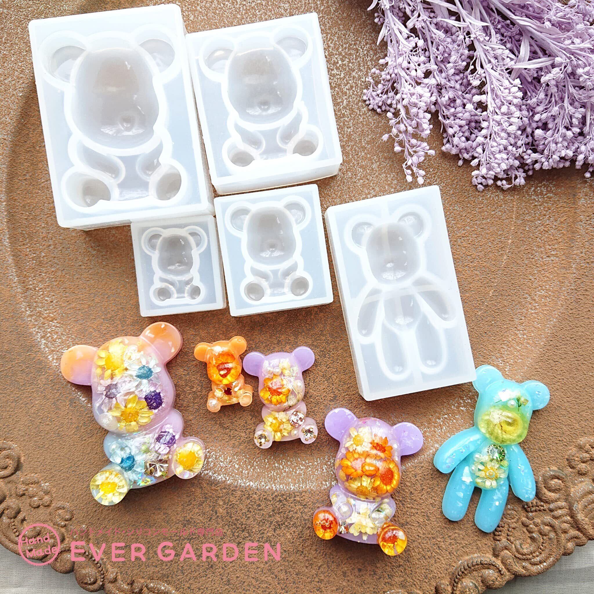 【Ever garden】 シリコンモールド くま 5個セット レジン 鏡面仕上 アクセサリー パーツ 作成 ネックレス イヤリング ピアス ペンダント キーホルダー シリコン モールド シリコン型 型 型抜き 抜き型 キット 道具 手作り 熊 クマ 動物