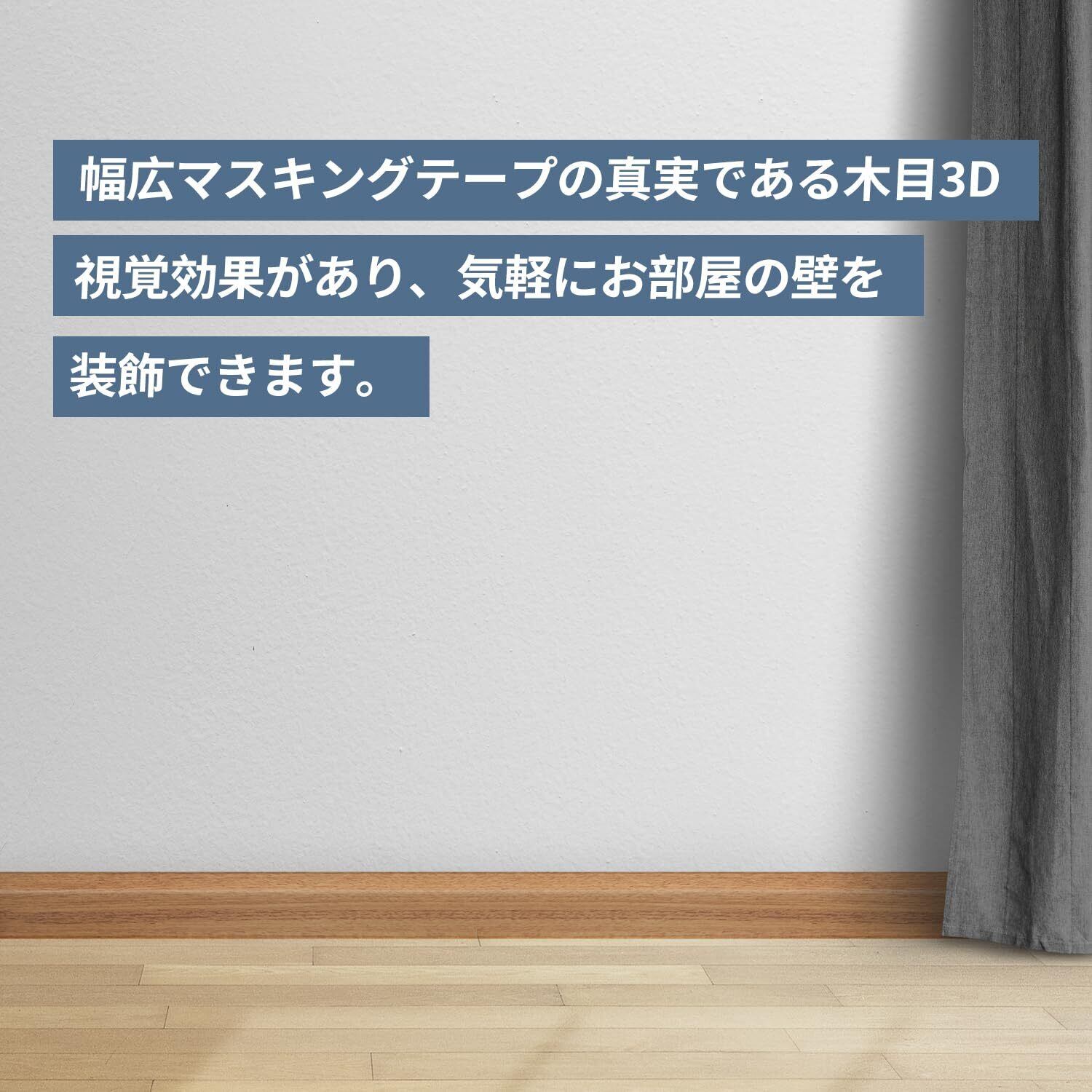 【用途広い、家具や壁をリフォームする】幅広マスキングテープの真実である木目3D視覚効果があり、気軽にお部屋の壁を装飾できます。壁、窓枠、巾木、襖や扉、ドア枠、引き出し、本棚、古い家具、玄関、リビング、キッチン、トイレ、お風呂、洗面所などの場所に使用できます。お気軽にお部屋の模様替え、気分転換を楽しめましょう!