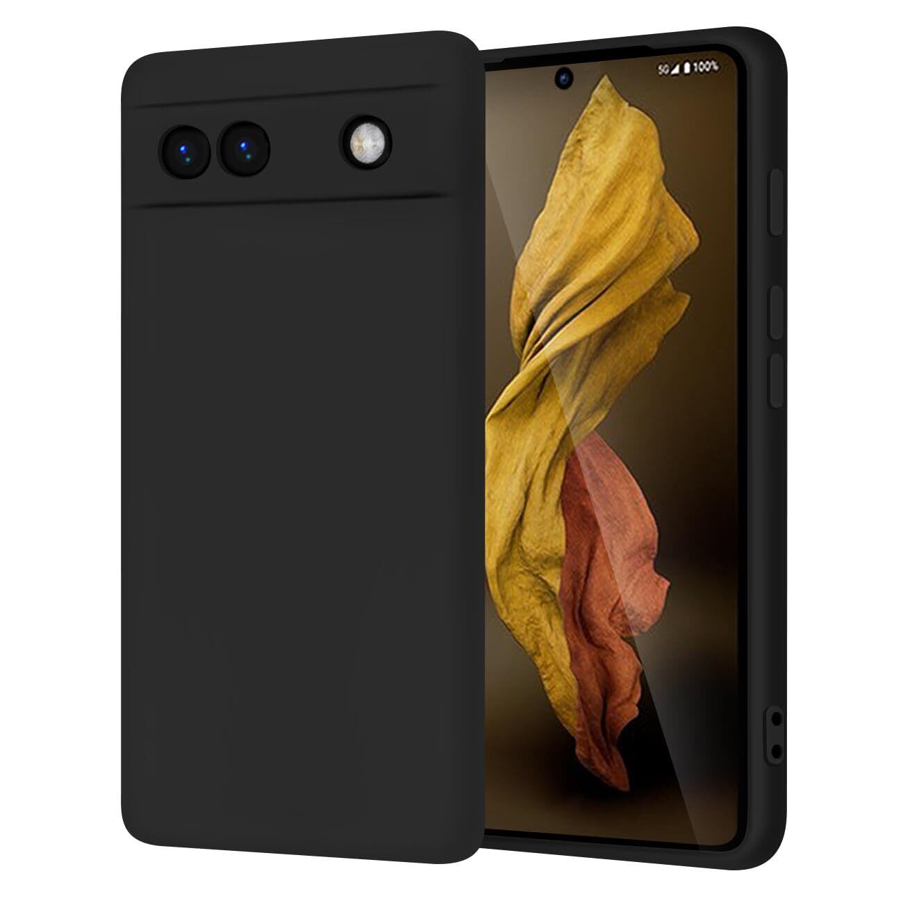 Google Pixel6a ケース シリコン 耐衝撃 カバー グーグル ピクセル 6a スマホケース ストラップホール付き シリコーン マット質感 持ちやすい 衝撃吸収 すり傷防止 柔軟 軽量 薄型 携帯ケース (ブラック)