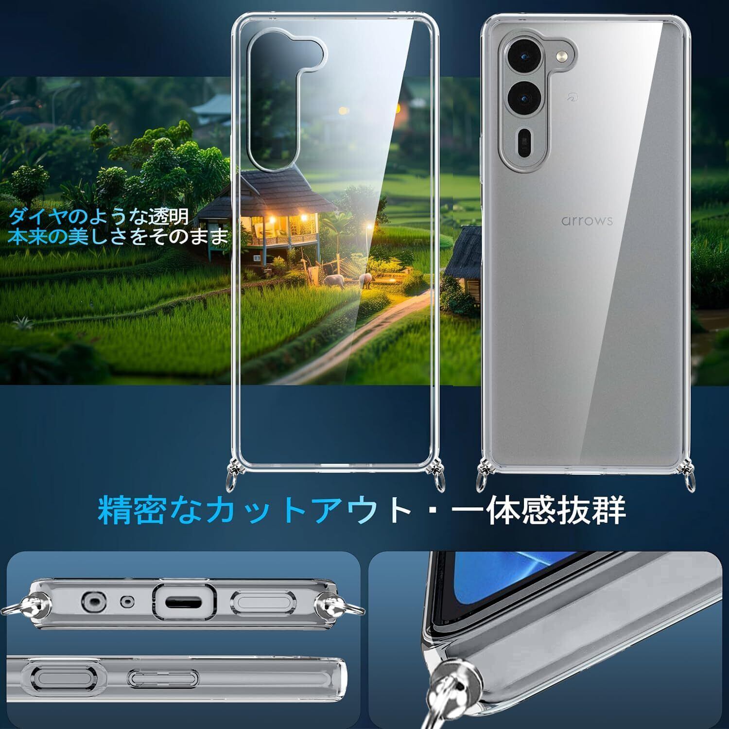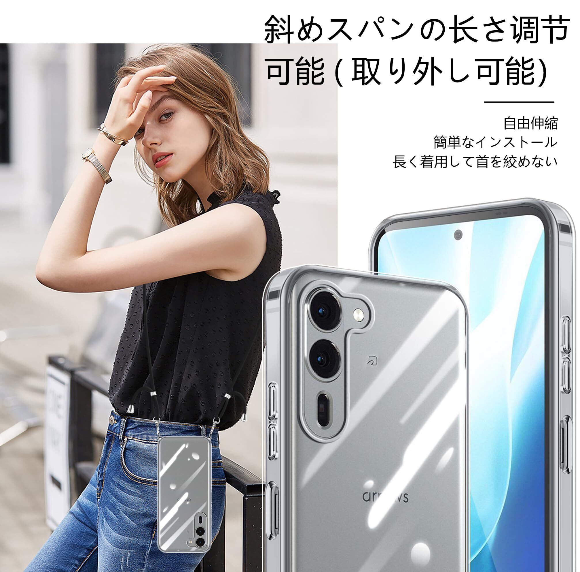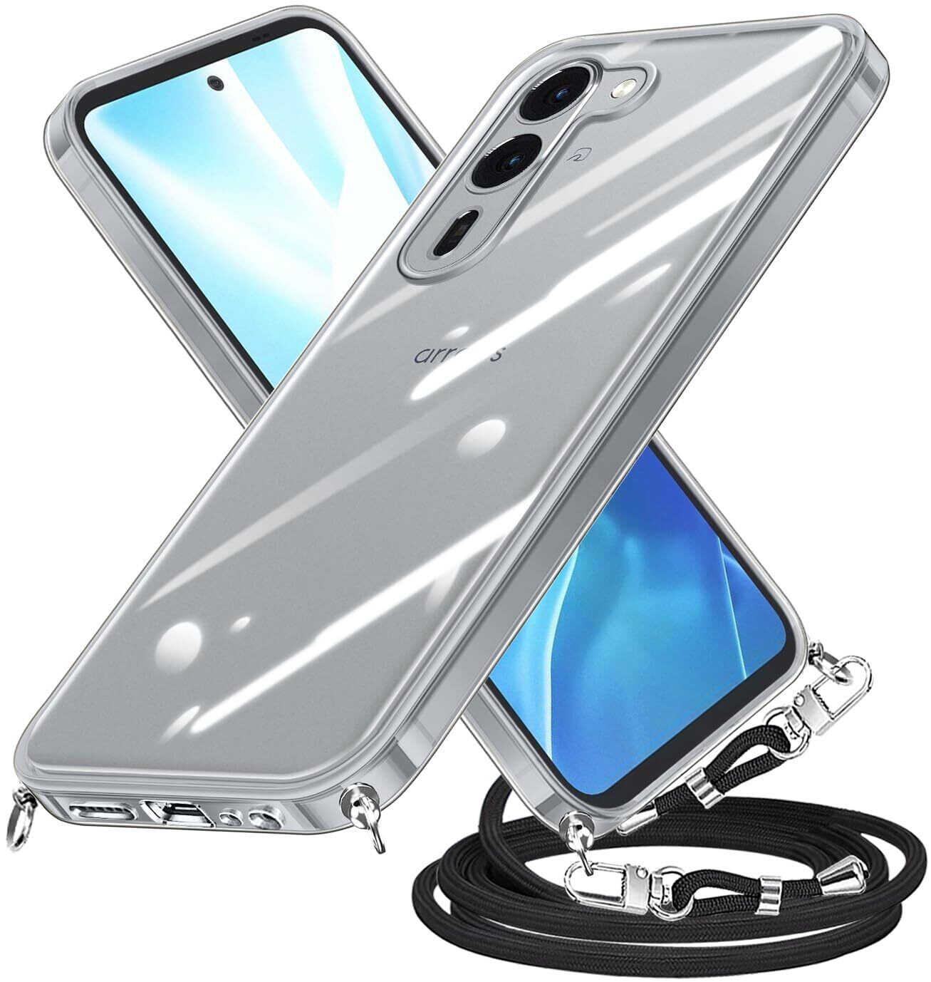 arrows We2 Plus F-51E ケース クリア ショルダー Arrows We2 Plus スマホケース 耐衝撃 人気 かわいい カバー ワイヤレス充電対応 首かけ 肩掛け TPU 薄型 軽量 ストラップ付き 取り外し可能 長さ調整可能(透明)