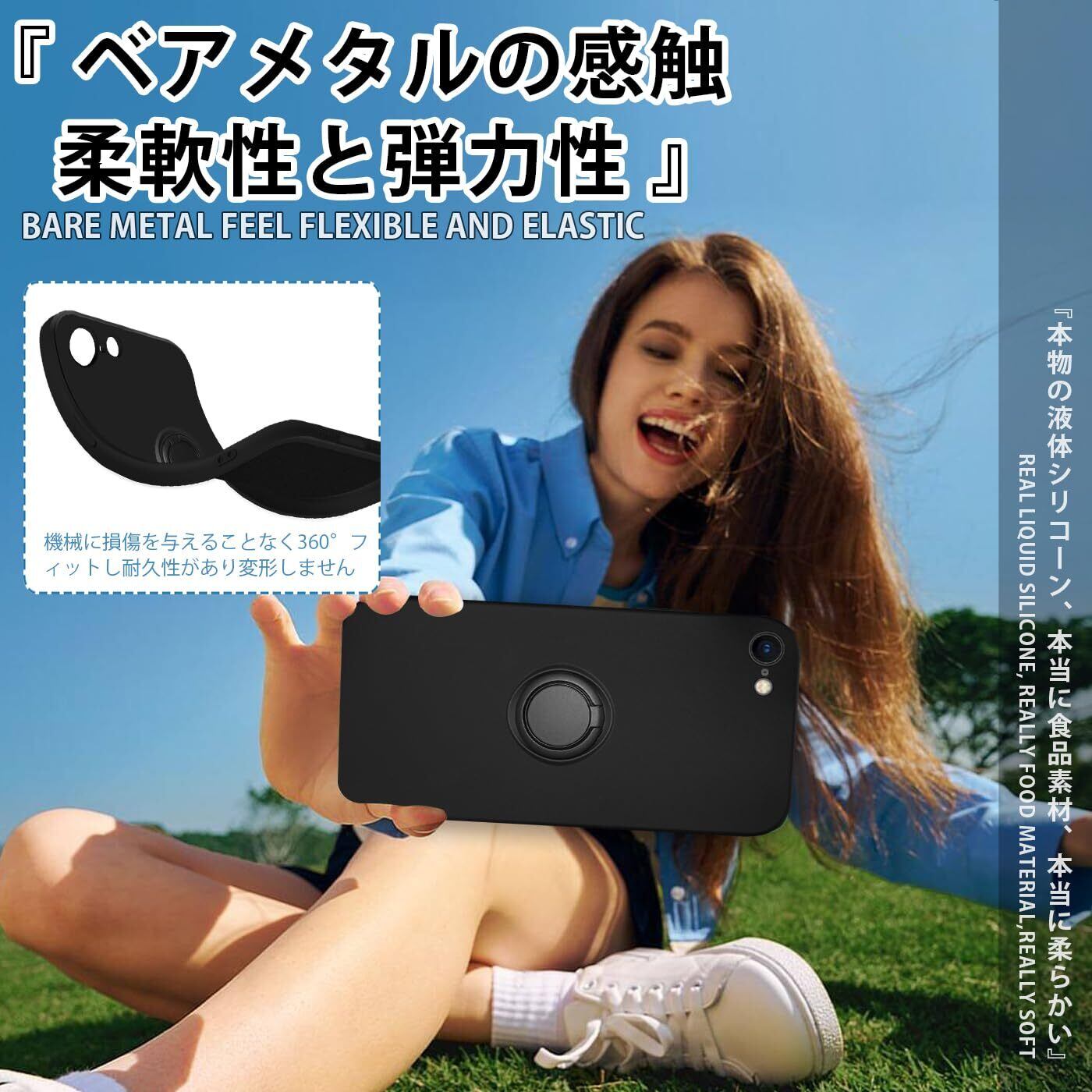 【リングの機能&車載スタンド機能】アイフォン 第2世代 カバー 360°回転可能リングホルダーです。片手で携帯を操作でき、滑り止め、強奪、落下などのことを防げます。リング.ホルダーの機能は携帯を横に放置できて、いつでもどこでも音楽、facetime、映画などの娯楽番組を思い切り楽しめます。マグネット式車載ホルダーに対応し。マグネット対応金属板が付き、車載ホルダーに強く吸着することもできます、運転中に携帯電話のナビゲーションなどの機能をより便利に使用することができます。(車載ホルダーは付属しませんので、ご注意ください。iPhone SE3 / SE2 / 8 / 7 ケース
