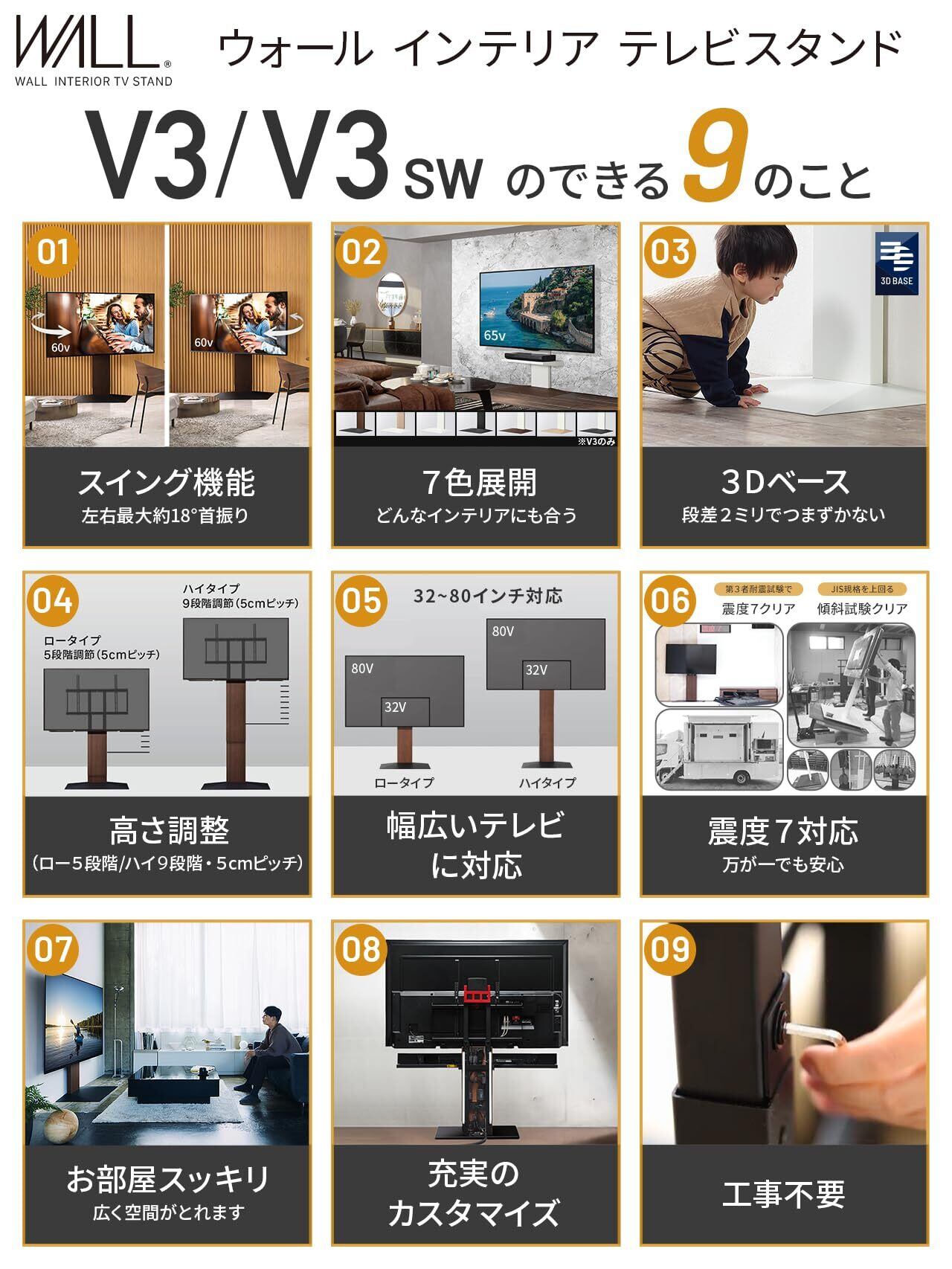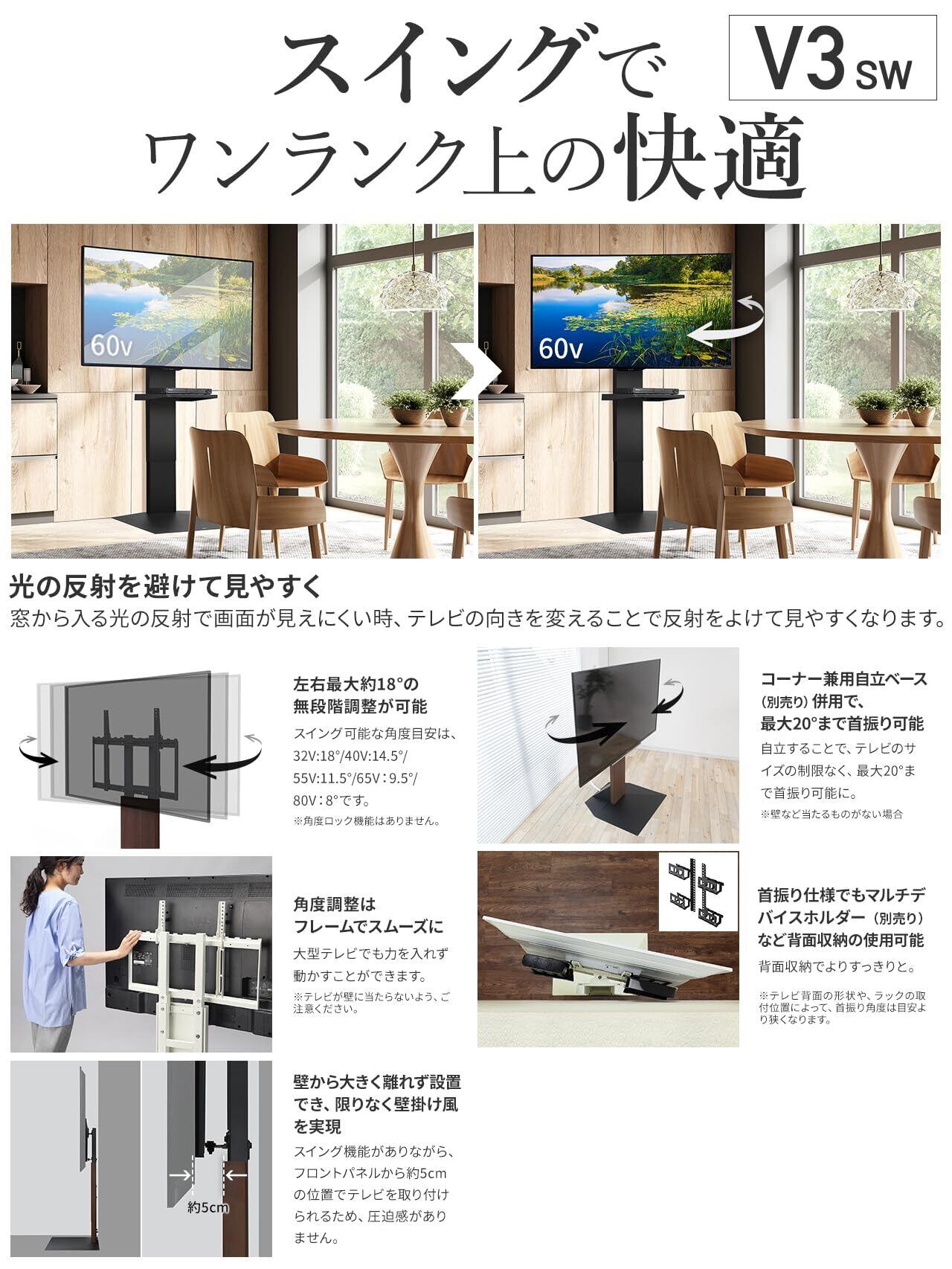WALL テレビスタンド テレビ台 壁寄せテレビスタンド WALL V3SW【SWING】 ロータイプ ホワイトオーク 左右首振り 角度調整 EQUALS イコールズ
