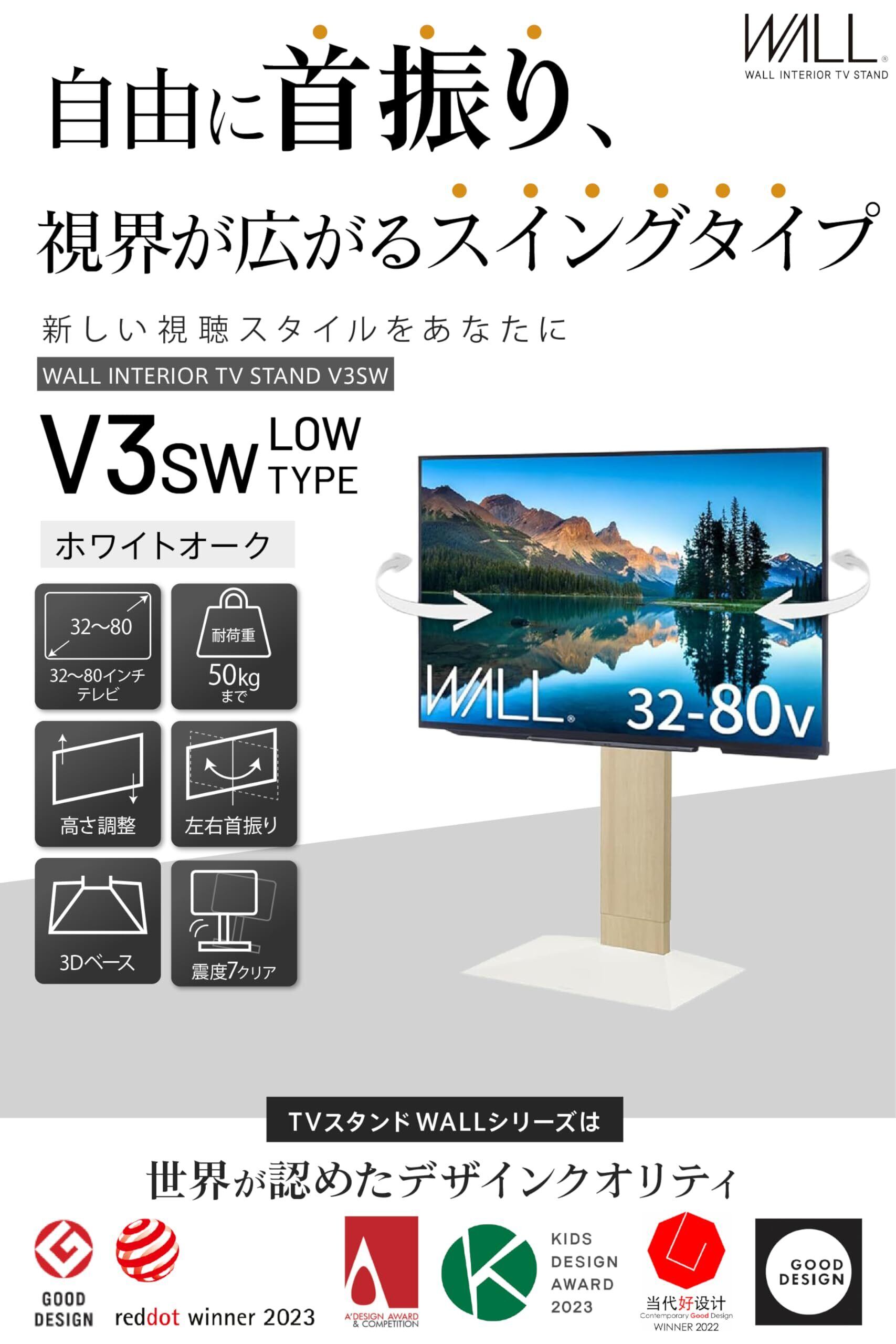 【在庫セール】WALL テレビスタンド テレビ台 壁寄せテレビスタンド WALL V3SW【SWING】 ロータイプ ホワイトオーク 左右首振り 角度調整 EQUALS イコールズ