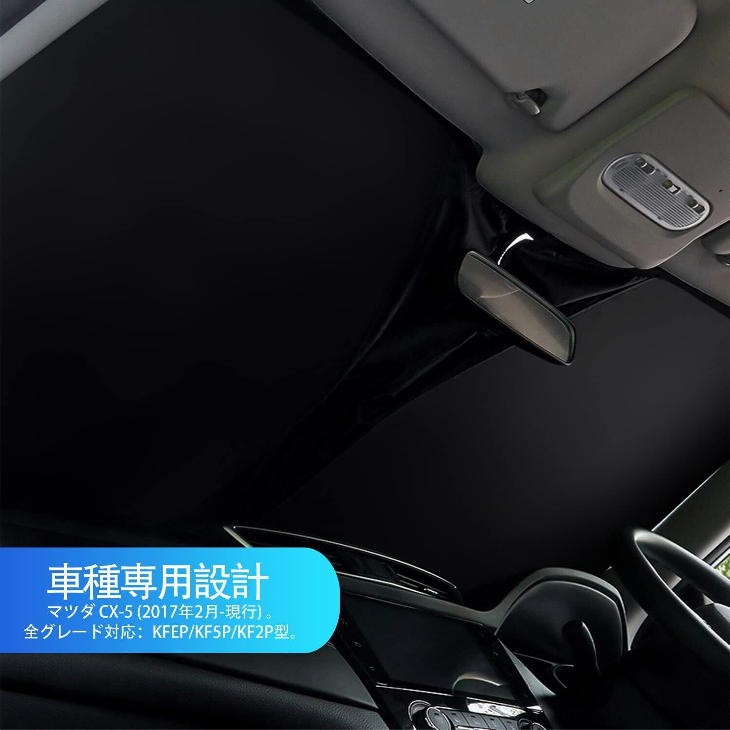 【適合車種】:マツダ CX-5 (2017年2月-現行) 。全グレード対応:KFEP/KF5P/KF2P型。※購入する前、商品形状と車型を確認してください。【内容セット】:フロントガラス用遮光サンシェード x1PCS。収納袋付。