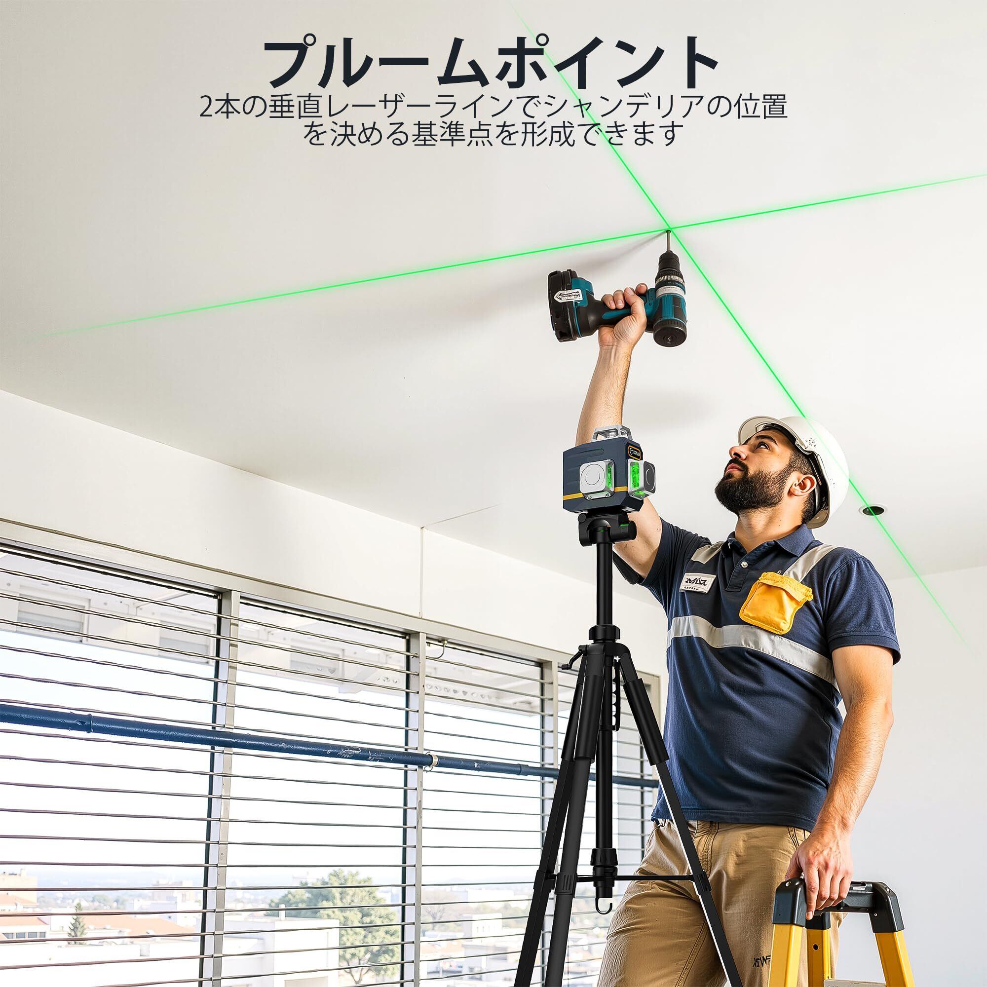 高精度12レーザーラインで完璧な位置合わせ:CIGMAN 360°グリーンレーザー墨出し器は、12本の超高輝度レーザーラインを搭載し、室内デザイン・タイル張り・型枠作業などの建設作業において、正確な水平・垂直調整をサポートします。付属のリモコンでラインの明るさや表示を簡単に調整可能で、DIY初心者からプロの施工者まで幅広く対応。安全基準はクラスII(<1mW)で安心。