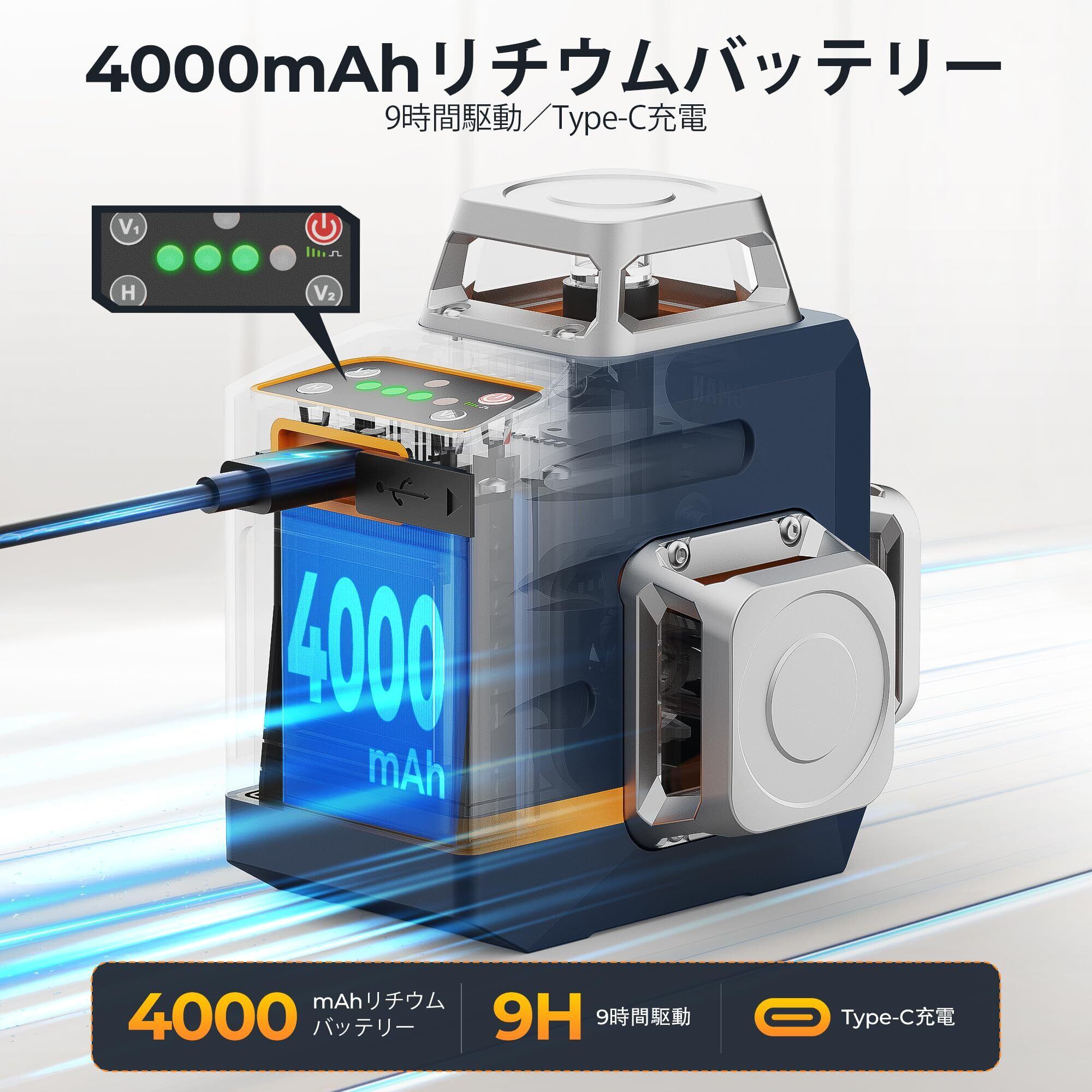 長持ちするバッテリー:4000mAhの大容量バッテリーを搭載し、長時間の使用にも対応。作業途中でバッテリー切れになる心配を軽減。さらにType-Cポートを採用しており、スマートフォンの充電器やモバイルバッテリーでも充電可能。充電1回で長時間の作業が可能なので、連続作業にも適しています。