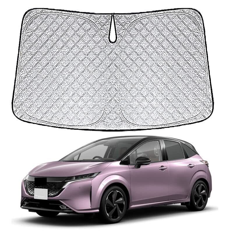 【在庫処分】新型 日産 ノート オーラ FE13 専用サンシェード 車 フロント 2021.8~現行 NISSAN AURA FE13 フロントガラス用 UVカット 日よけ 車中泊 遮光 断熱 折り畳み式 日産オーラ アクセサリー カスタム 内装パーツ(シルバー ノート オーラ FE13 厚い6層)