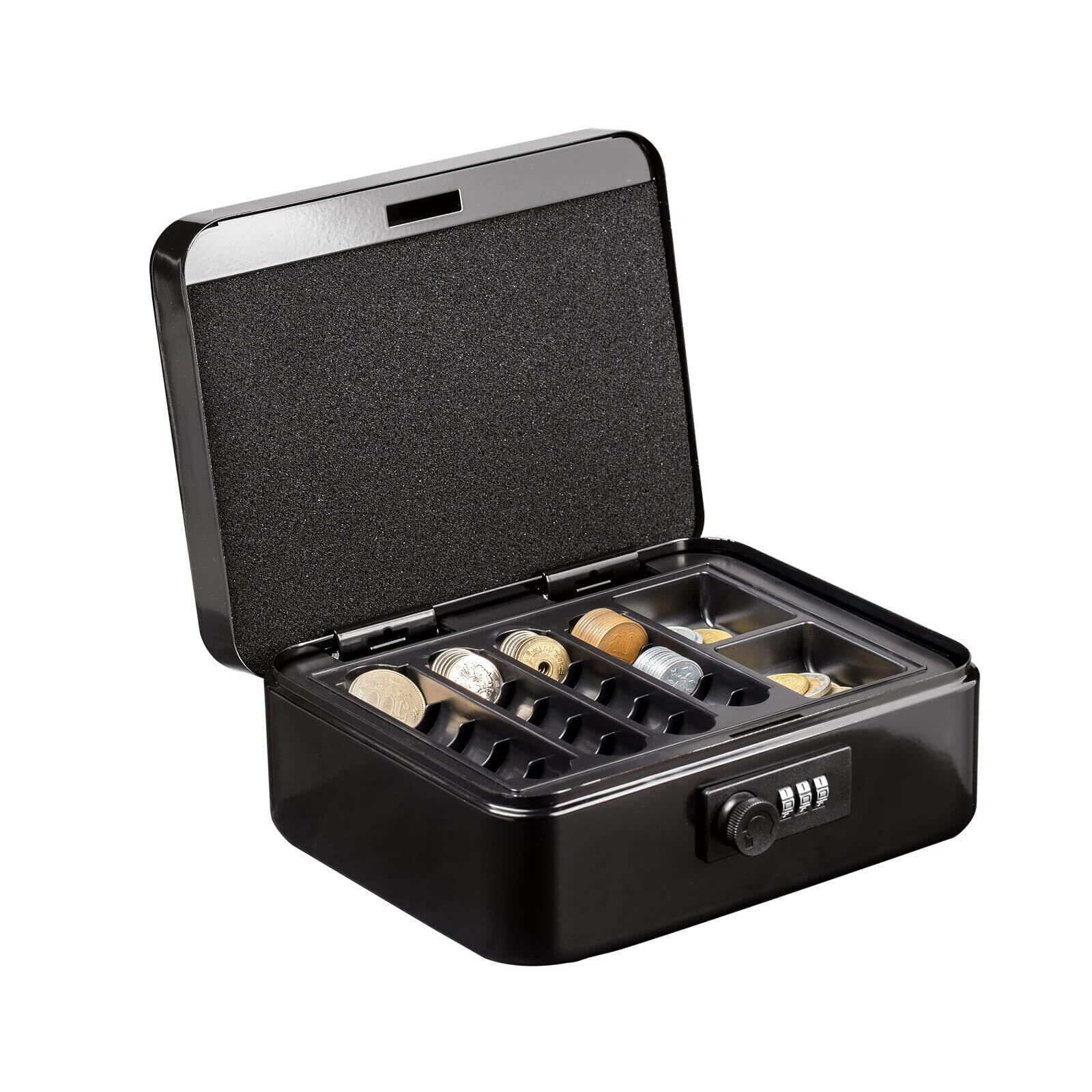 【人気商品】八番屋 手提げ金庫 キャッシュメイト ダイヤル付 A6サイズ 会計 オフィス ミニ金庫 貯金箱 スチール製 家庭用 約W20×D15.8×H8.5cm M200JP ブラック