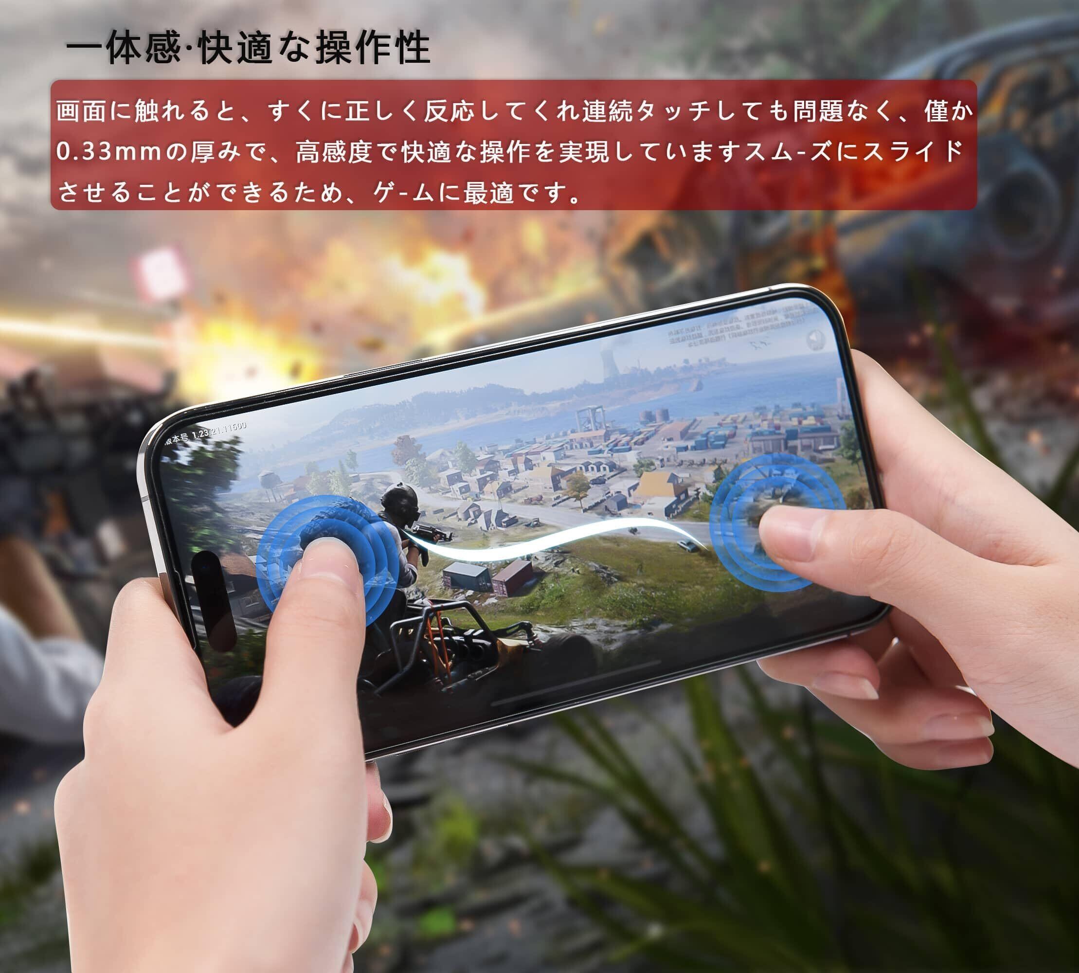 「超透過率・ケースと干渉せず」厚さ0.33mmの超薄型で、透過率は99.99%。驚くほど高い透明度を誇っており、画面の鮮明さや美しさを損なわずにいPhone 本来の美しい画面をお楽しみいただけます。