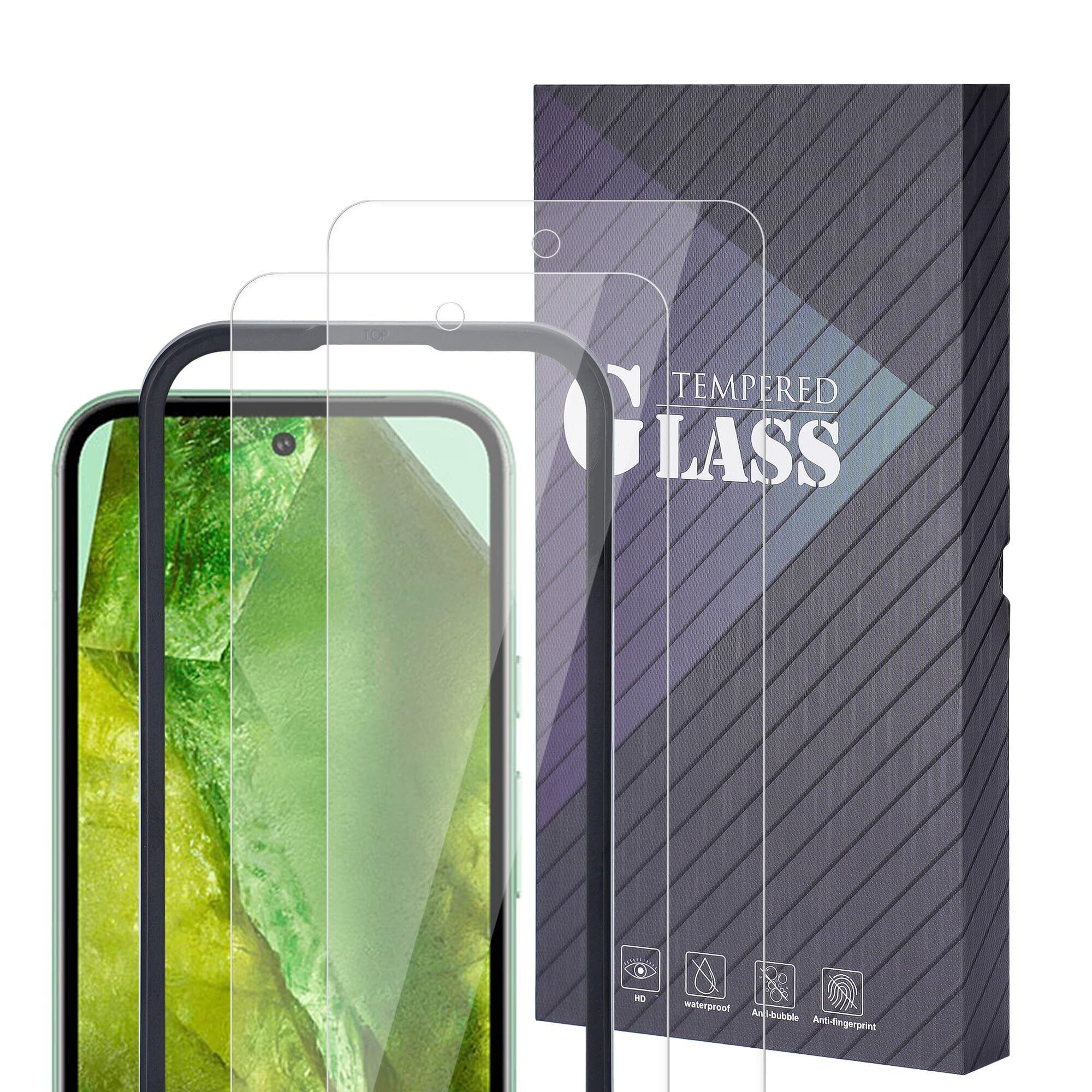 Google pixel 8A ガラスフィルム (2枚セット) 平面保護 指紋認証 グーグルピクセル8a 液晶保護フィルム 指紋防止 硬度9H 高透過率 + ガイド枠 気泡なし ラウンドエッジ加工 簡単貼り付け (Google Pixel 8A)