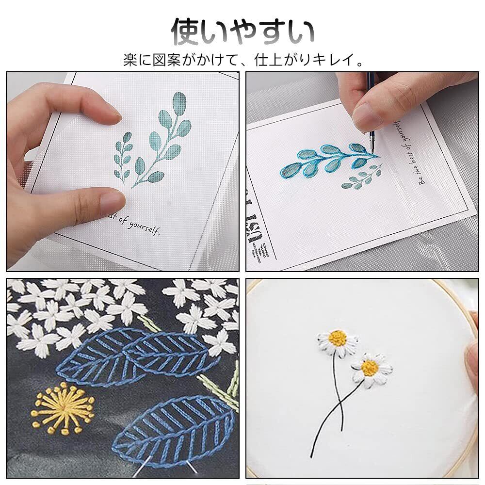 ご注意:シールが溶けきれなく生地に残ってしまった場合、生地の風合いが変わることがありますので、しっかりと洗い流してください。また、インク過多の場合には水洗いをすることで溶け残りが起こる場合があるため、線で描くようにお使いください。刺繍フィルムは薄いため、パッケージに包まれた後、自然なしわが生じる場合がありますが、ご使用には問題ありませんので、あらかじめご了承ください。