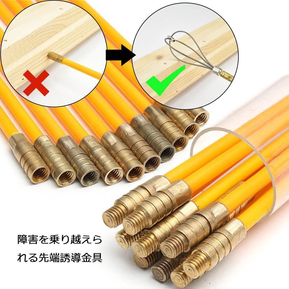 fanfeng 通線ロッド 通線ワイヤー 1m φ6mm*6本 φ4mm*4本 ケーブル索引具 先端金具9種類付き 収納ケース付き イエロー