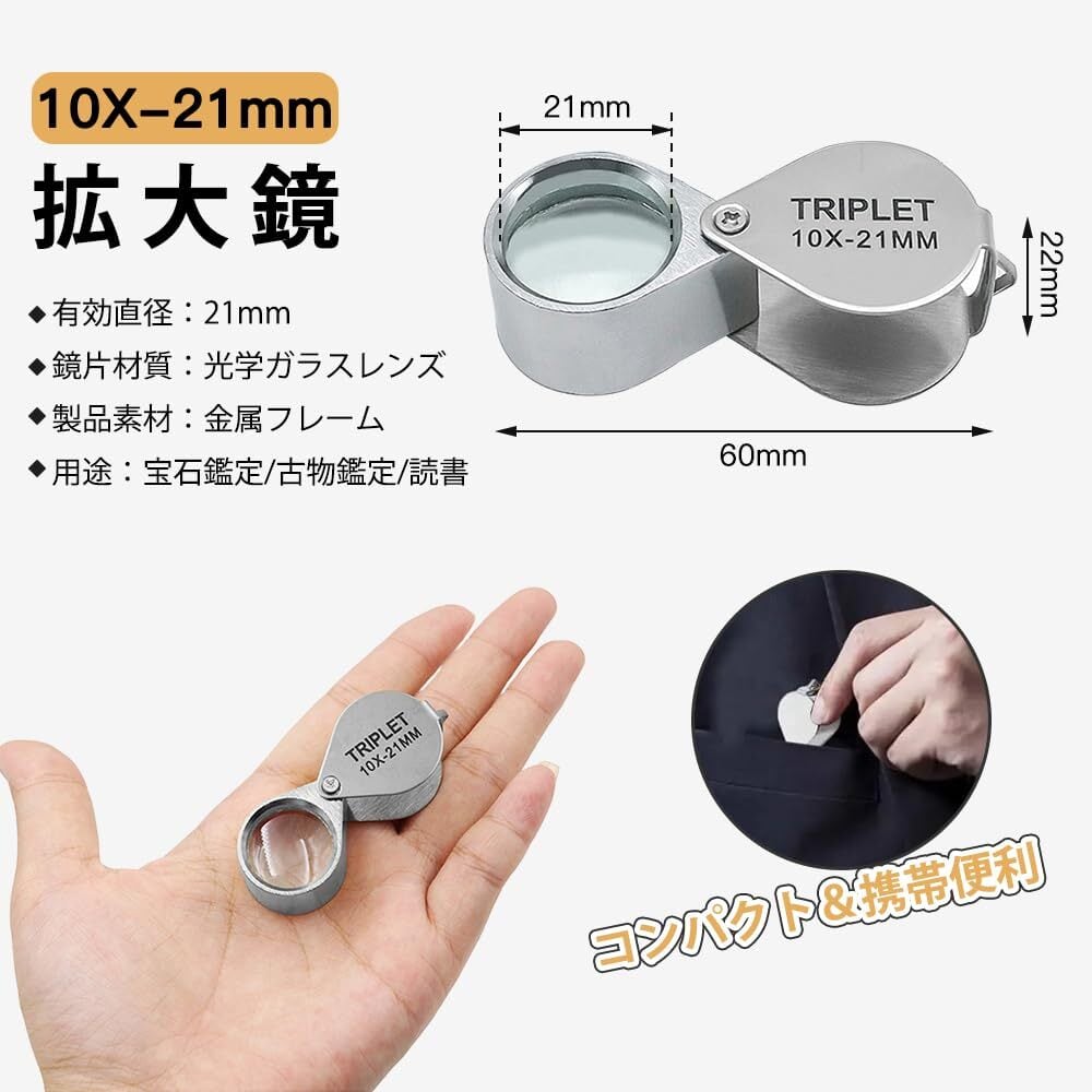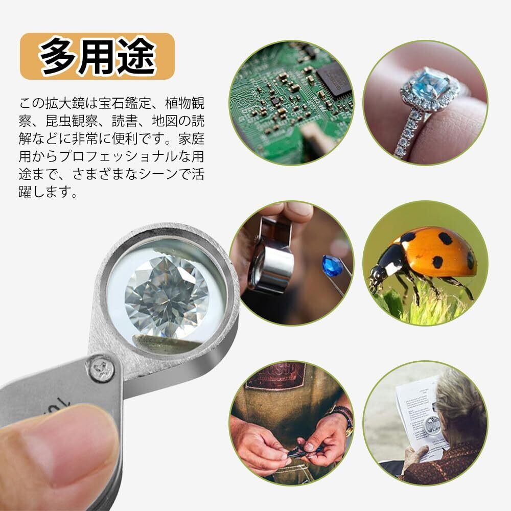 5. 【多用途で幅広い使用シーン】 この拡大鏡は宝石鑑定、植物観察、昆虫観察、読書、地図の読解などに非常に便利です。家庭用からプロフェッショナルな用途まで、さまざまなシーンで活躍します。コンパクトで持ち運びやすいので、どこでも使用できます。