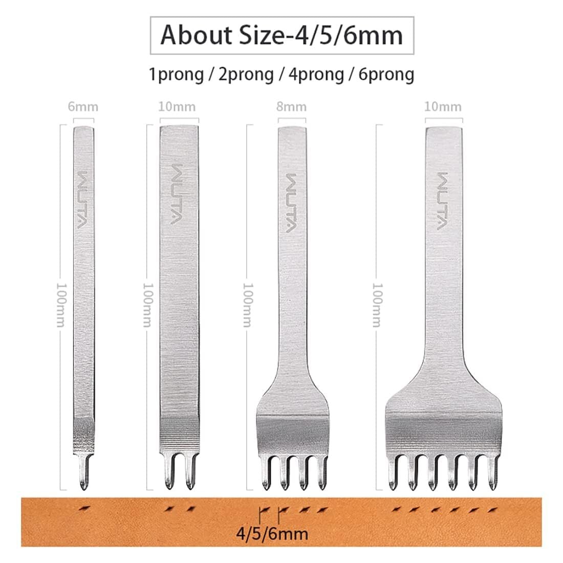 WUTA レザークラフト菱目打ち アップグレードレザークラフト工具 4本 鋼製穴あけツールセット 皮革工芸DIY用 手作道具(6mm 1+2+4+6)