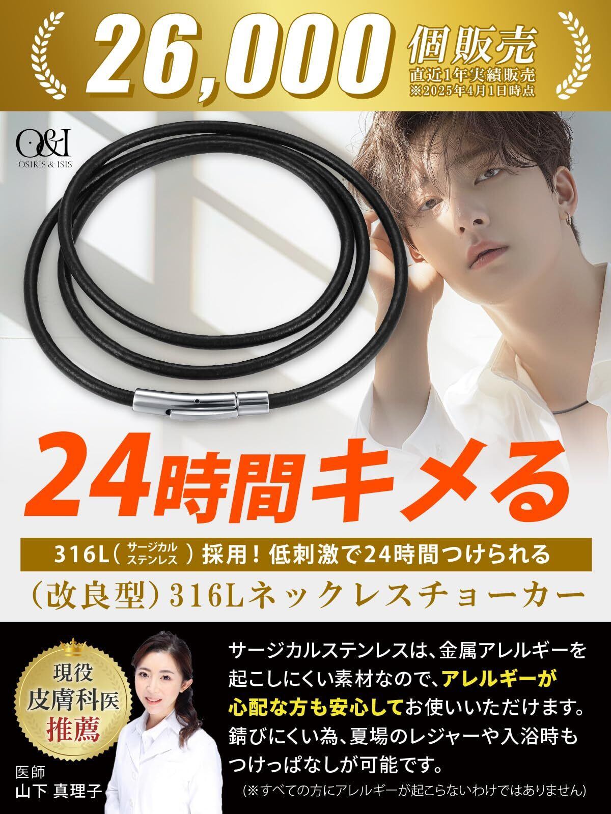 【人気商品】[OSIRIS&ISIS] チョーカー 紐 ネックレス メンズ ステンレス 【防水×アレルギー対応】【プッシュボタンで簡単取り外し可能】 男性用チョーカー