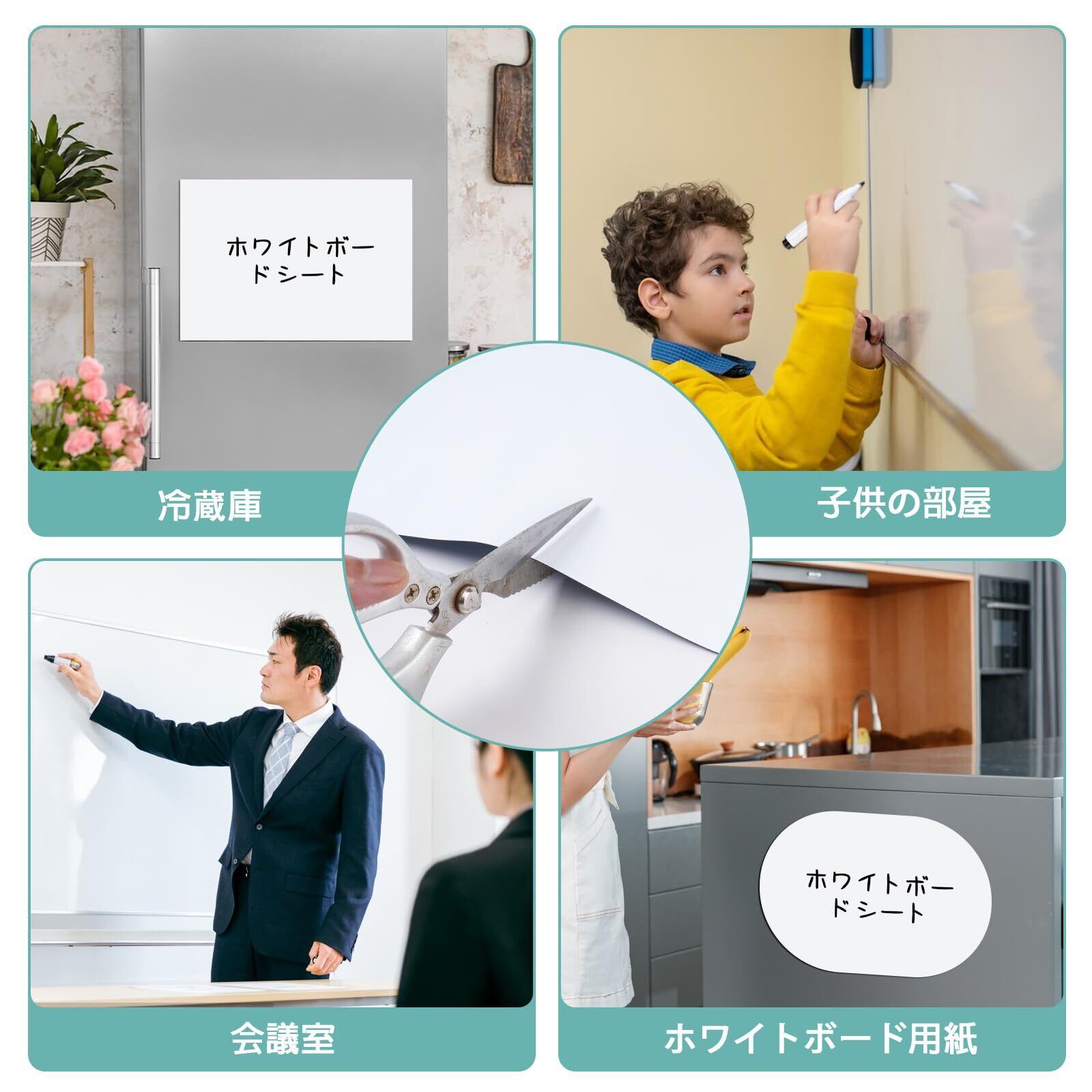 【安心素材とサイズの多様性】 環境にやさしい素材を使用し、子供が触れても安心です。ホワイトボード シート A3・A4 などの 小型から大型まで豊富なサイズがあり、自由に裁断も可能です。