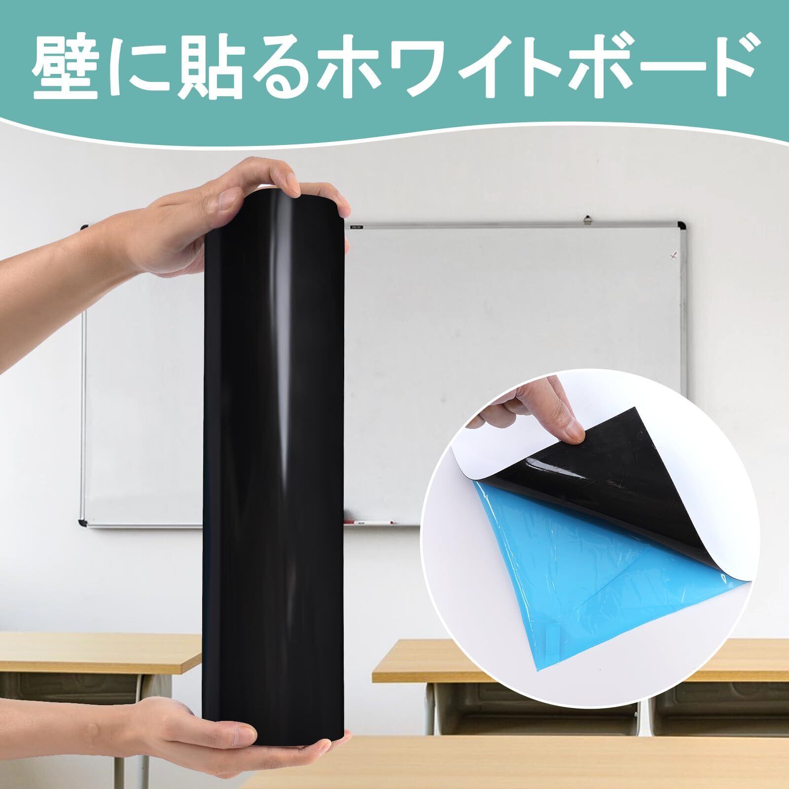 【即貼即用の便利性】 粘着式ホワイトボードで、壁面や家具に貼るだけで瞬時に使用可能です。糊付け不要の簡単操作が特徴で、書き心地がよく、スムーズに筆記できます。