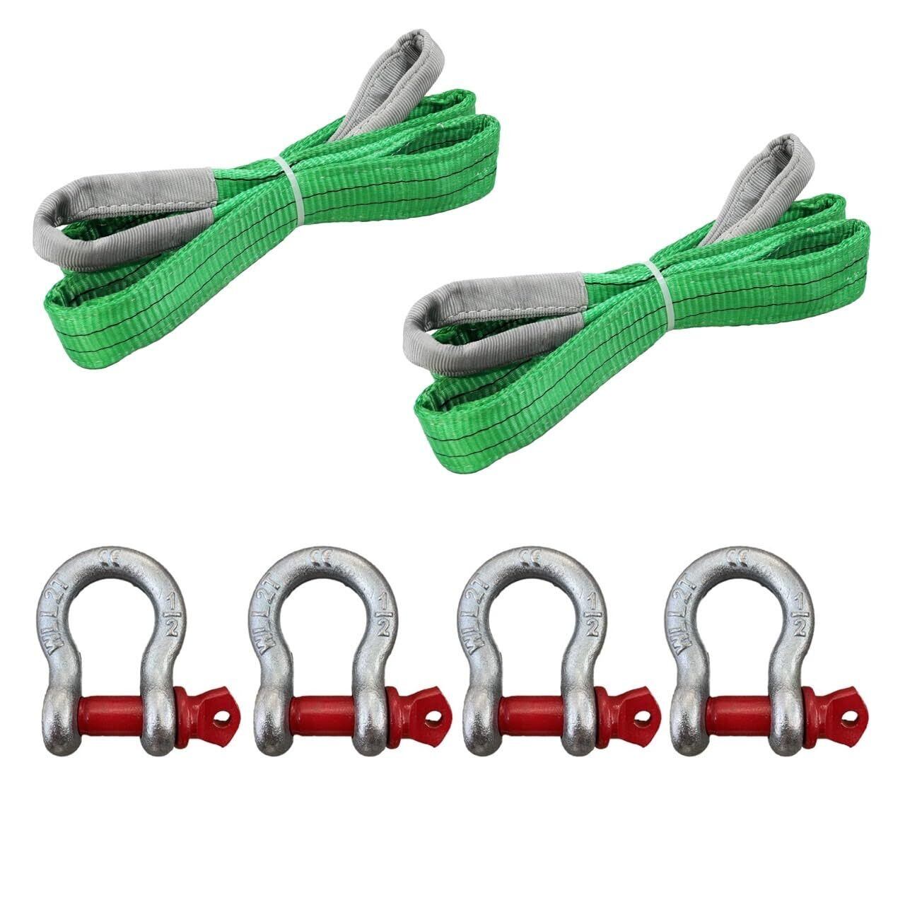 HELIX スリングベルト 2m 幅50mm シャックル 2ton 使用荷重2000kg ナイロンスリング 吊上げ 牽引 日本語説明書付き [スリングベルト 2t 2m 2本 鍛造シャックル 弓型 2t 4個セット]