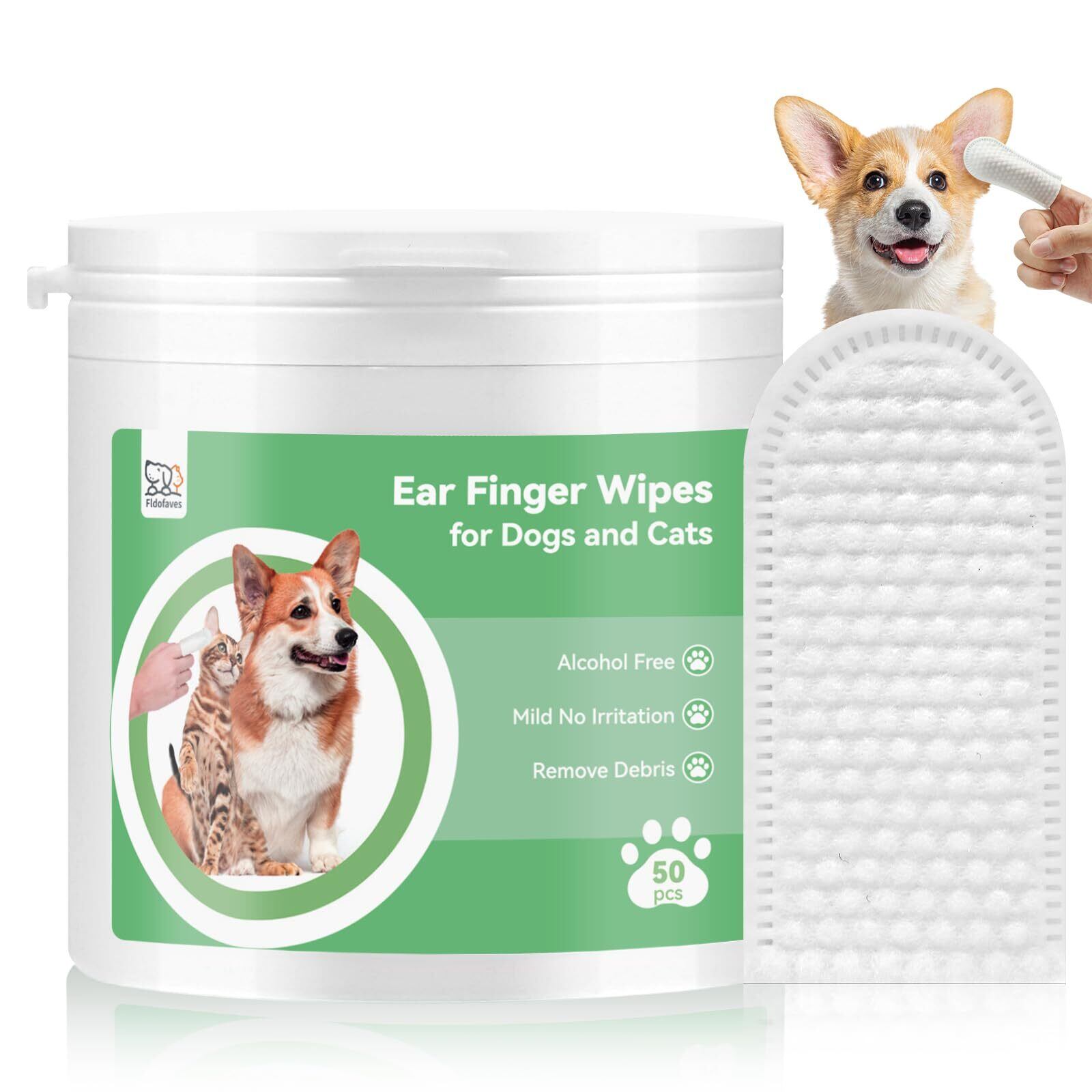 Fldofaves 犬 猫 耳掃除 イヤークリーナー 犬 ペット 低刺激 犬用耳洗浄 犬 耳掃除 シート 指サック ココナッツオイルとアロエエキスを含んだシート50枚 - ワンちゃんの耳ダニ治療、耳の感染症に【獣医師監修】