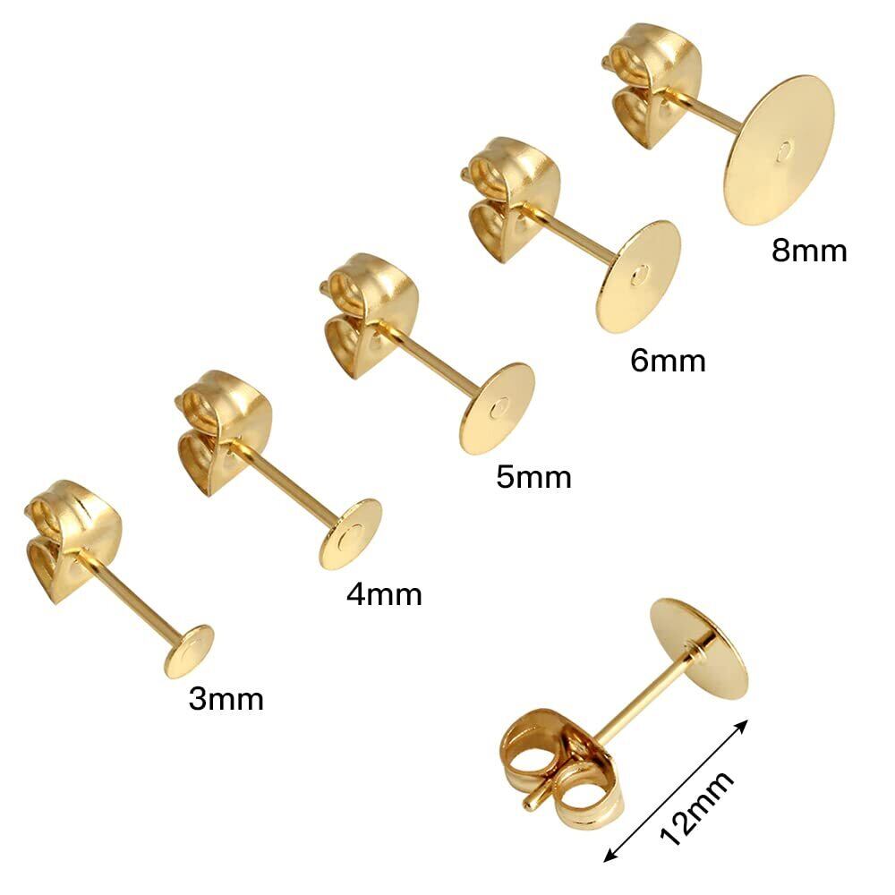 200個セット 丸皿 ピアス パーツ ゴールド シルバー 2色100ペア 5サイズ 3mm 4mm 5mm 6mm 8mm 平皿 台座付き キャッチ付きピアス 芯付ピアス金具