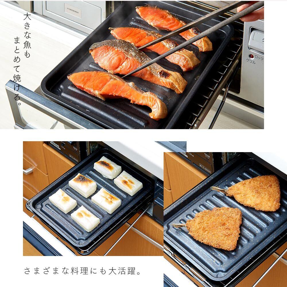 【人気商品】アイメディア(Aimedia) グリルトレー ワイドサイズ グリルプレート 魚焼き器 マーブルコート 魚焼きグリル 調理トレー トースター フッ素コート IH対応 ガス火対応 グリルのお手入れ簡単焼魚トレー