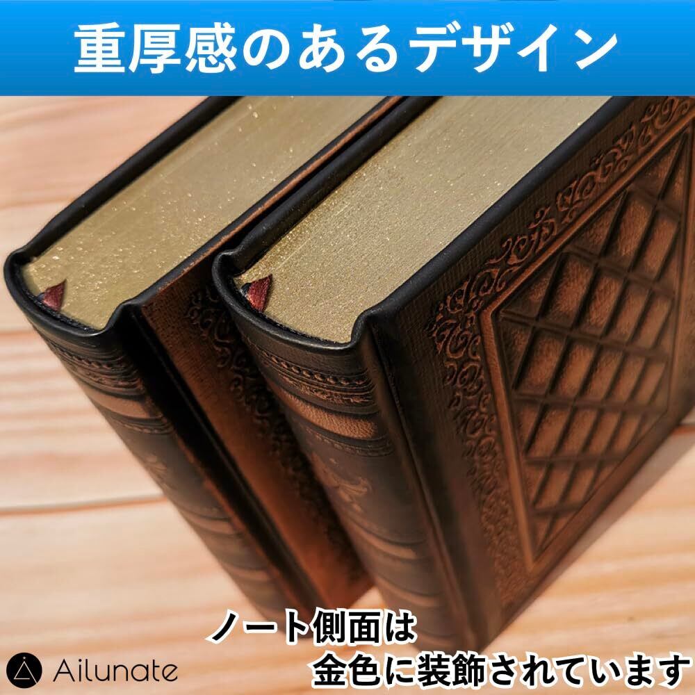 【在庫処分】Ailunate 日記帳 ノート アンティーク B6 自由帳 メモ帳 魔導書風 ハードカバー ヴィンテージ おしゃれ 無地 ダイアリー (ブロンズ)