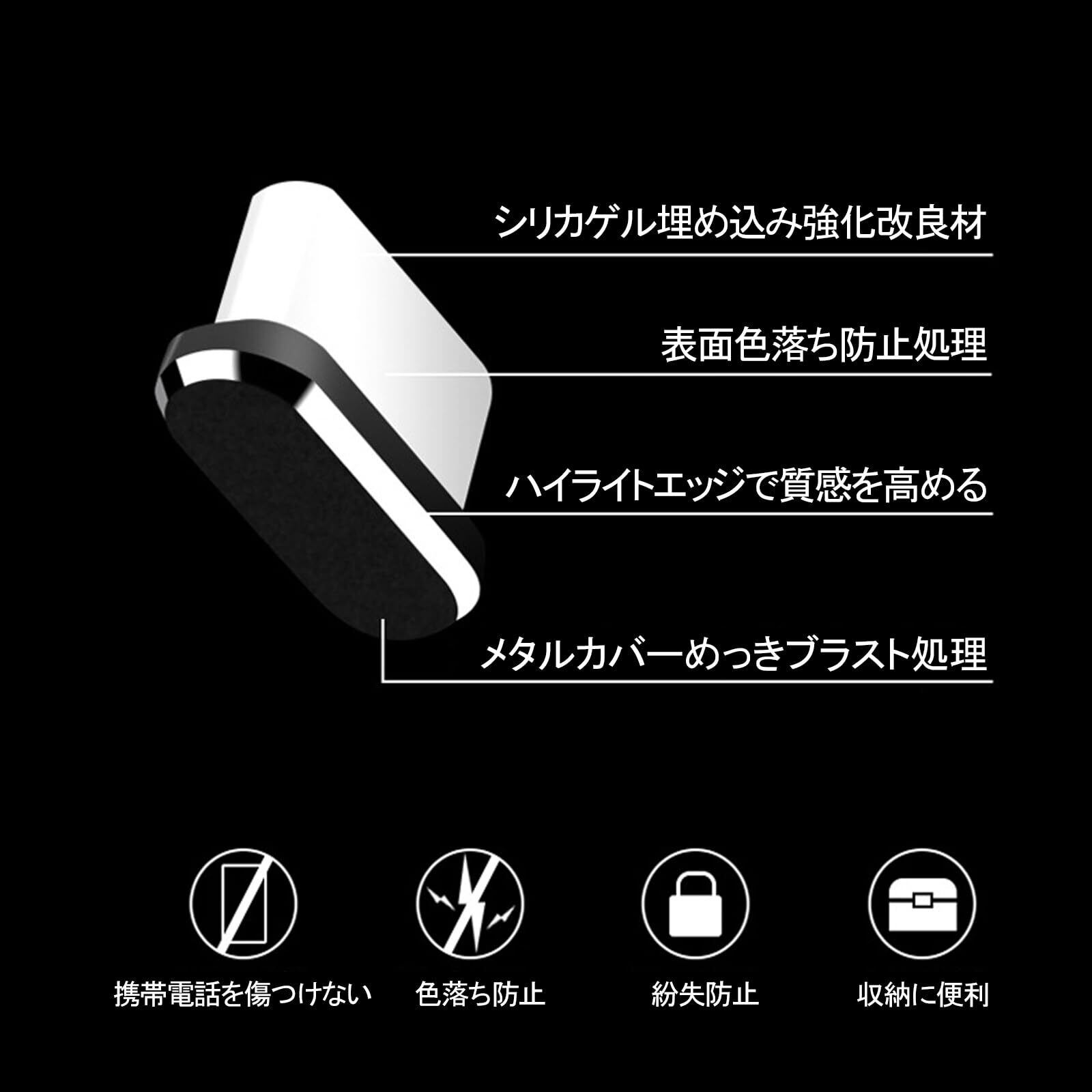 【高品質】アルミニウム合金材料とプラスチックを採用し、より耐久性があり、より使いやすい。ほこりなどの侵入を防ぐスマートフォンコネクタ保護カバーが、スマートフォンをより保護します。