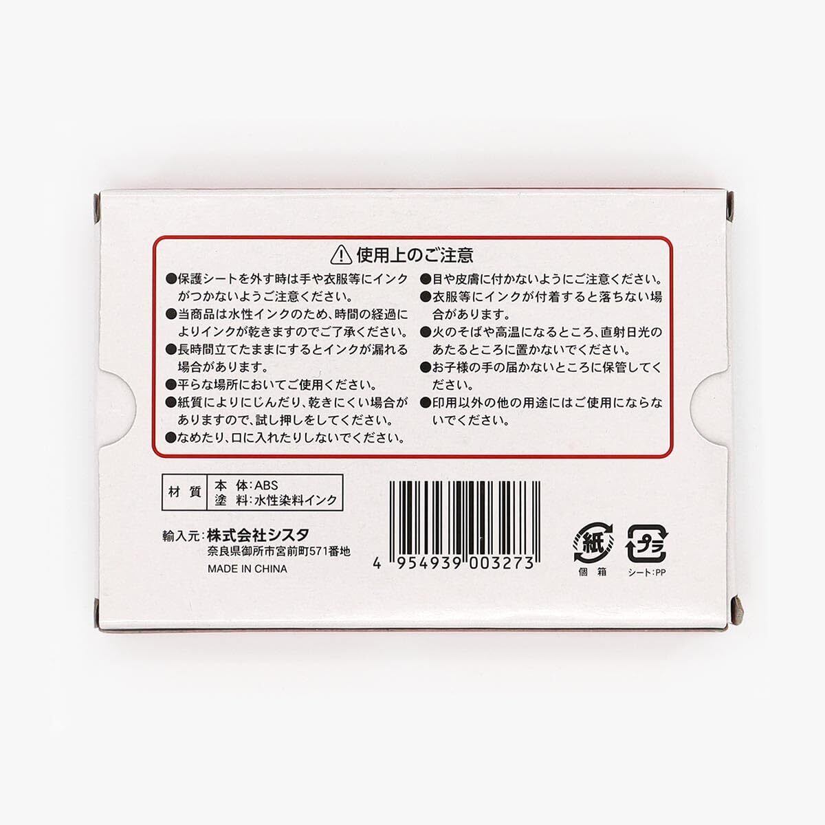 名刺サイズ(9.1cm×5.5cm)の試し押し用の用紙1枚つき。紙質によりにじんだり、乾きにくい場合がありますので、試し押しをしてからご使用ください。