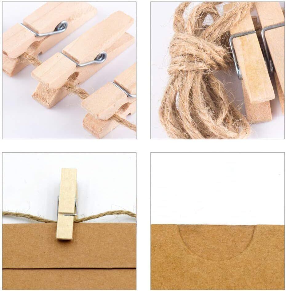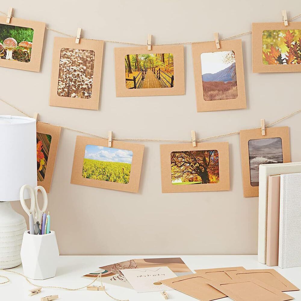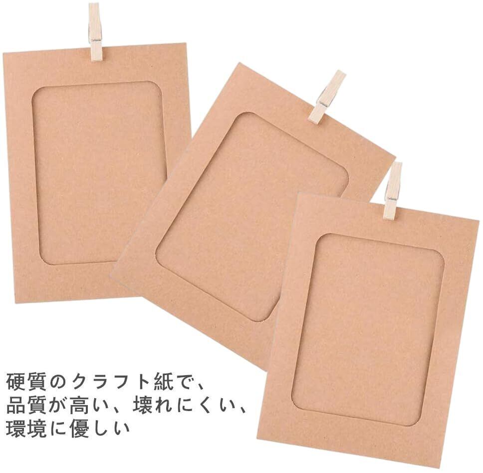【高品質の素材】高品質のハードクラフト紙で作られたペーパーフォトフレーム,強い耐久性,損傷しにくい、環境保護。高品質の木製クリップは非常に環境に優しく、使いやすいです。麻ロープでお望みのスペースを自由に装飾できます、複数回再利用ができ、自分のデザインスタイルをアピールフォトフレーム・壁掛けをDIY手作りができます。