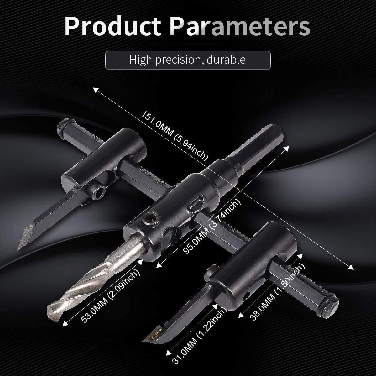 【刀が鋭くしっかり貫通&耐久性】バランスの良い2枚刃で正確な穴あけが可能です。コンパスのように円を描く形で使用できます。スムーズな切れ味の刃を使用しています。電動ドリル、ボール盤に取り付けてコンパスのように刃が回転し、切り口がとても綺麗に穴あけが出来ます。高品質の合金鋼材を採用して、錆びにくい。誘導ねじが高速度鋼で、より鋭いで防錆性と耐久性があります。