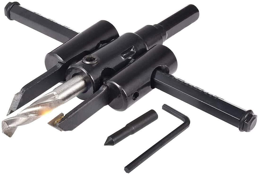 【用途】 電動ドリル、ボール盤、インパクトドライバに取り付けてコンパスのように刃が回転し、切り口がとても綺麗に穴あけが出来ます。スピーカーボックスの穴あけ ドアノブの穴あけ、配管、ダクト等の穴あけなど天井部のボード、ALC、ベニヤなどに設置するダウンライト取付木工作業、ラミネート、プラスチック、アクリル、合板、コンポジット、石膏、ゴム、および厚紙など、サイディングボード、木材、新建材、硬質建材の穴あけに最適します。※下穴をあけてから使用することにより、スムーズな穴あけが出来ます。 対象素材:木材、合板、石膏ボード、PCVボード