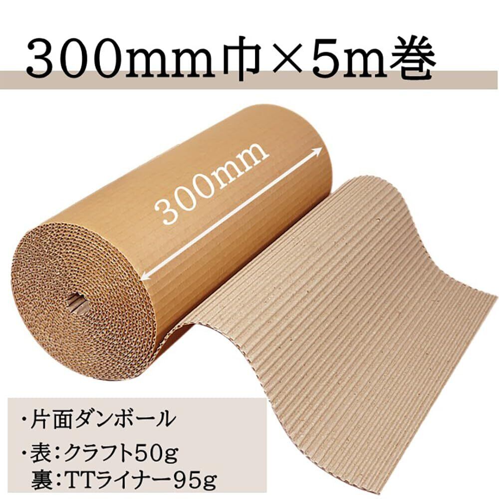 日本製 巻き段ボール (幅300mmx長さ5m) 3mm厚 片面 段ボール 巻きダンボール 引越し 梱包 養生