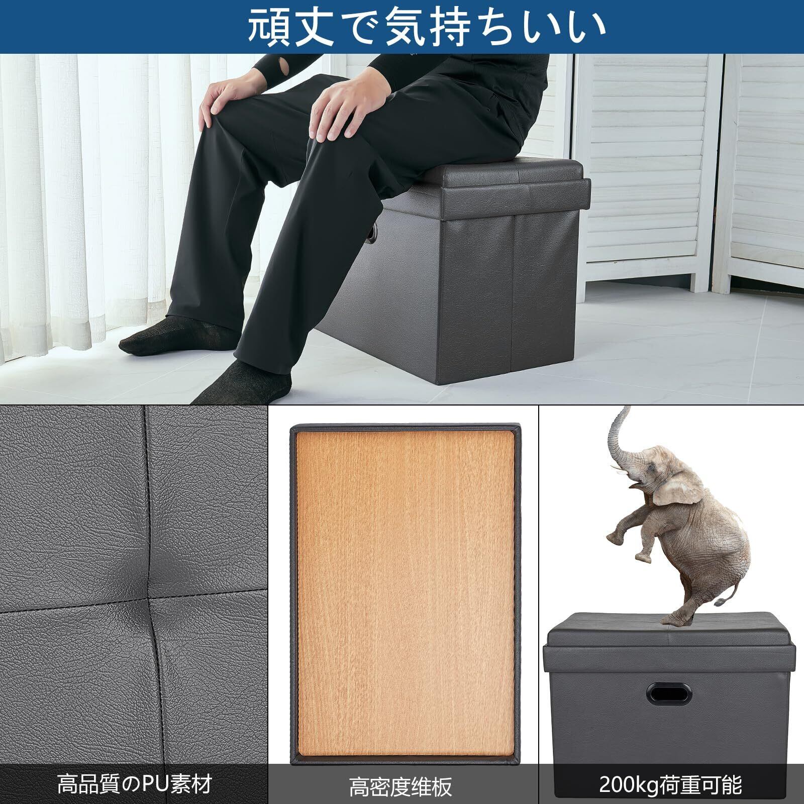【頑丈で気持ちいい】整理収納用腰掛けの中心部分は高密度の繊維製板で作られています。200kgまでの静態荷重を耐えられます。頑丈の木製枠で長持ちができます。弾力性が高いスポンジと高品質の革を使用し、長時間に座っても気持ちいいです。