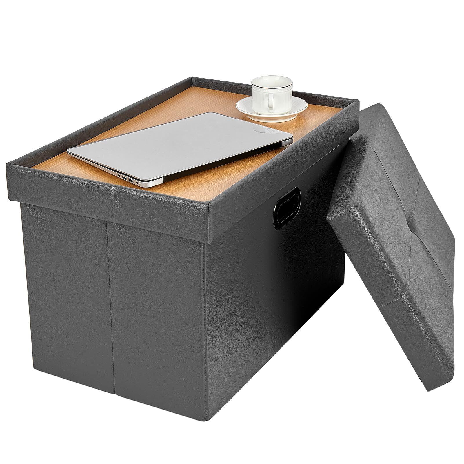 収納スツール 折りたたみ 座れる収納ボックス テーブル付き オットマン 椅子 PUレザー 足置き台 耐荷重200KGまで かんたん組立 (幅60×奥行き38×高さ43cm、ダークグレー)